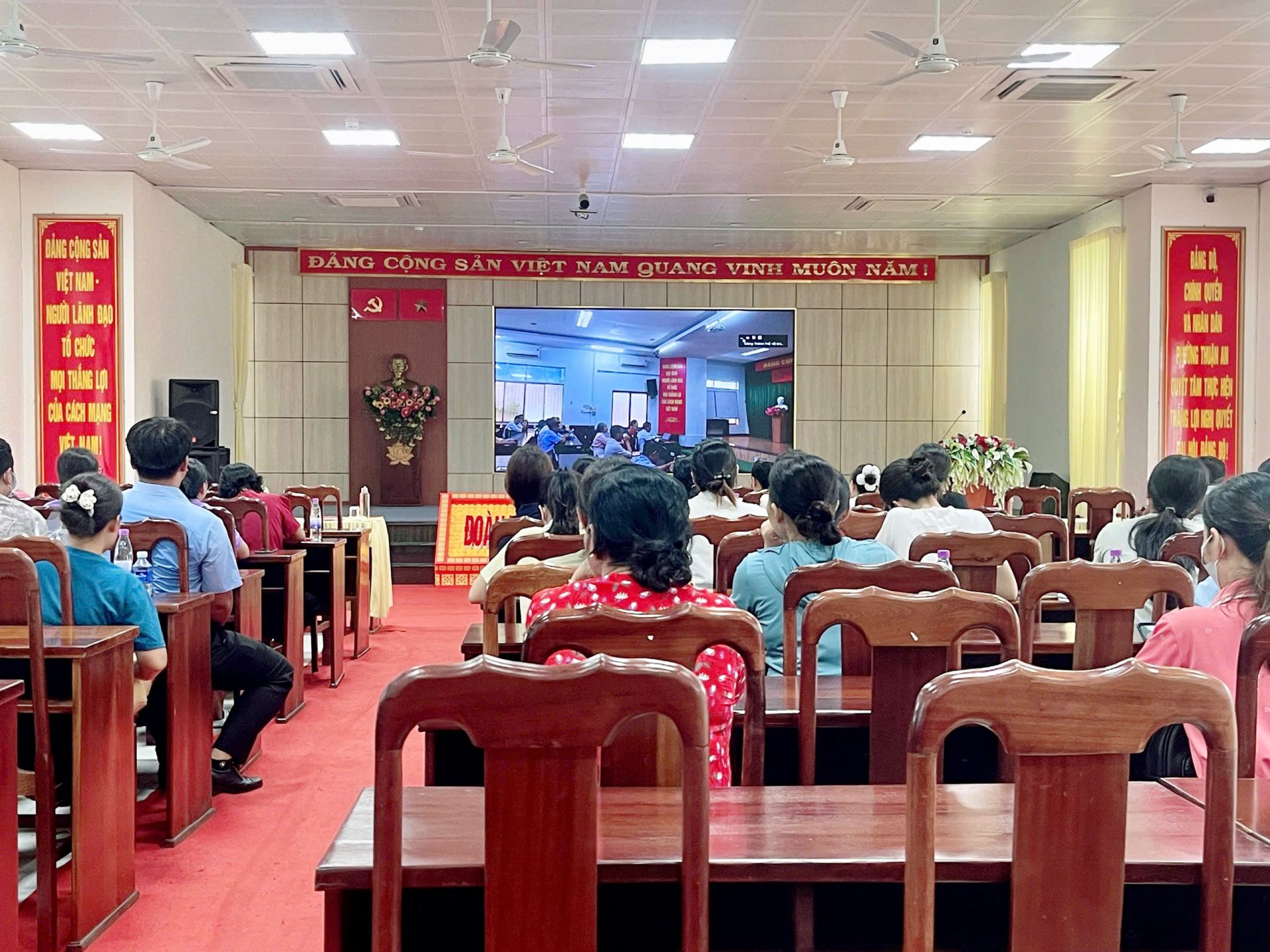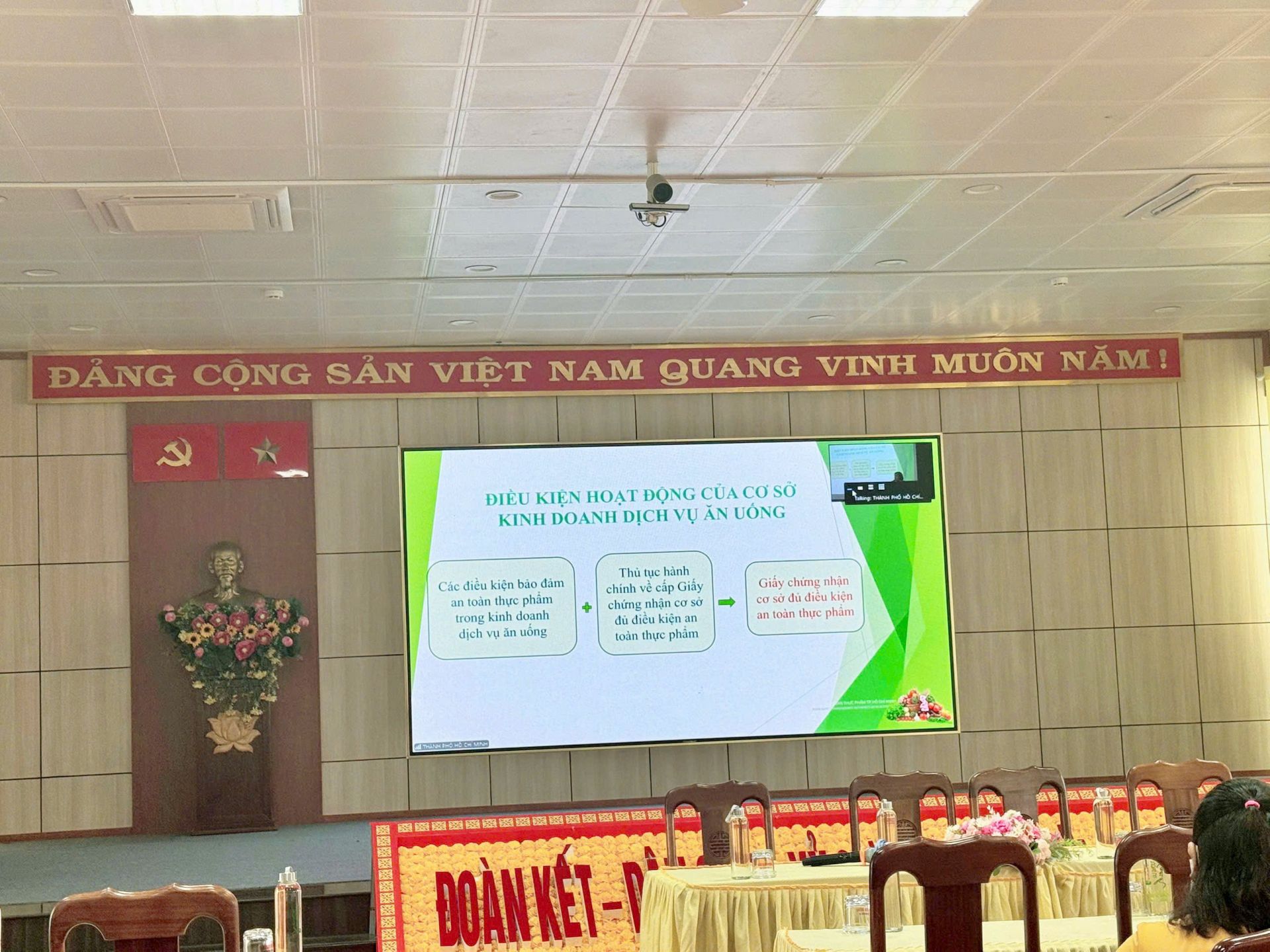 Chiều ngày 22/10/2025 Phòng Văn hoá – Xã hội phường Thuận An phối hợp Sở An toàn vệ sinh thực phẩm Thành phố Hồ Chí Minh tổ chức phổ biến kiến thức ATTP cho 53 giáo viên, bảo mẫu và nhân viên căn tin của trường học. Tham dự lớp tập huấn trực tuyến các chuyên đề về công tác đảm bảo an toàn thực phẩm