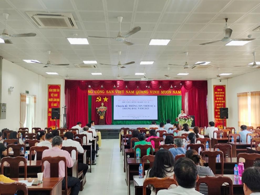 Tại hội nghị, các đại biểu được nghe báo cáo viên trình bày những nội dung trọng tâm về tình hình phát triển kinh tế, xã hội trong nước và quốc tế 6 tháng đầu năm 2025.
