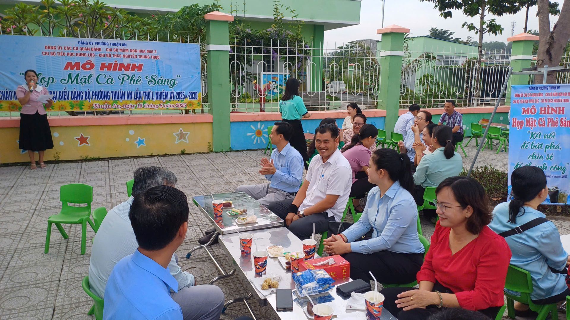 Sáng ngày 15/8/2025 tại trường Mầm non Hoa Mai 2, phường Thuận An, Đảng ủy các Cơ quan Đảng phối hợp cùng Chi bộ Trường Mầm non Hoa mai 2, Chi bộ Trường Tiểu học Hưng Lộc và Chi bộ Trường THCS Nguyễn Trung Trực tổ chức ra mắt mô hình buổi “Họp mặt – Cà phê sáng”.