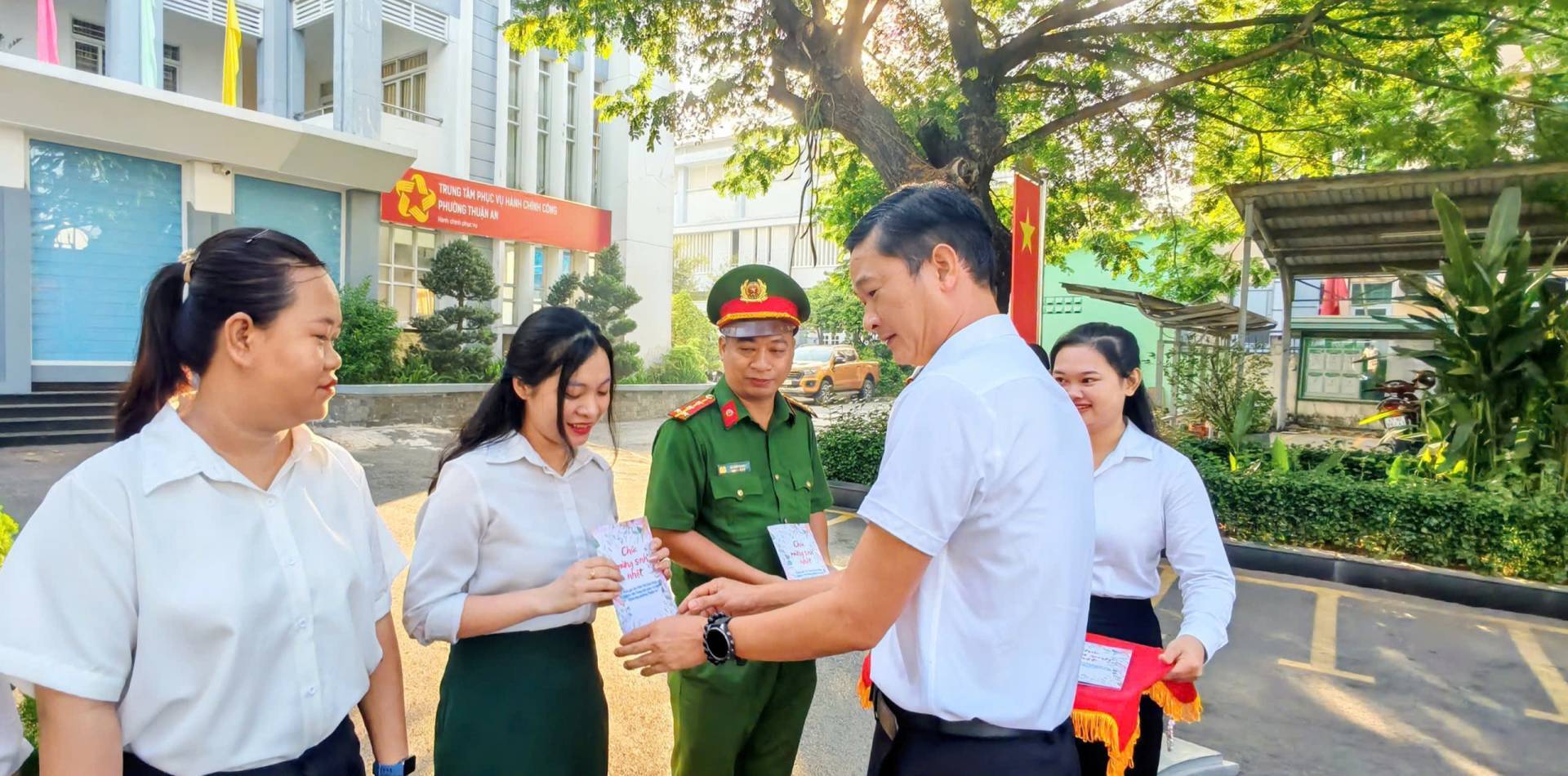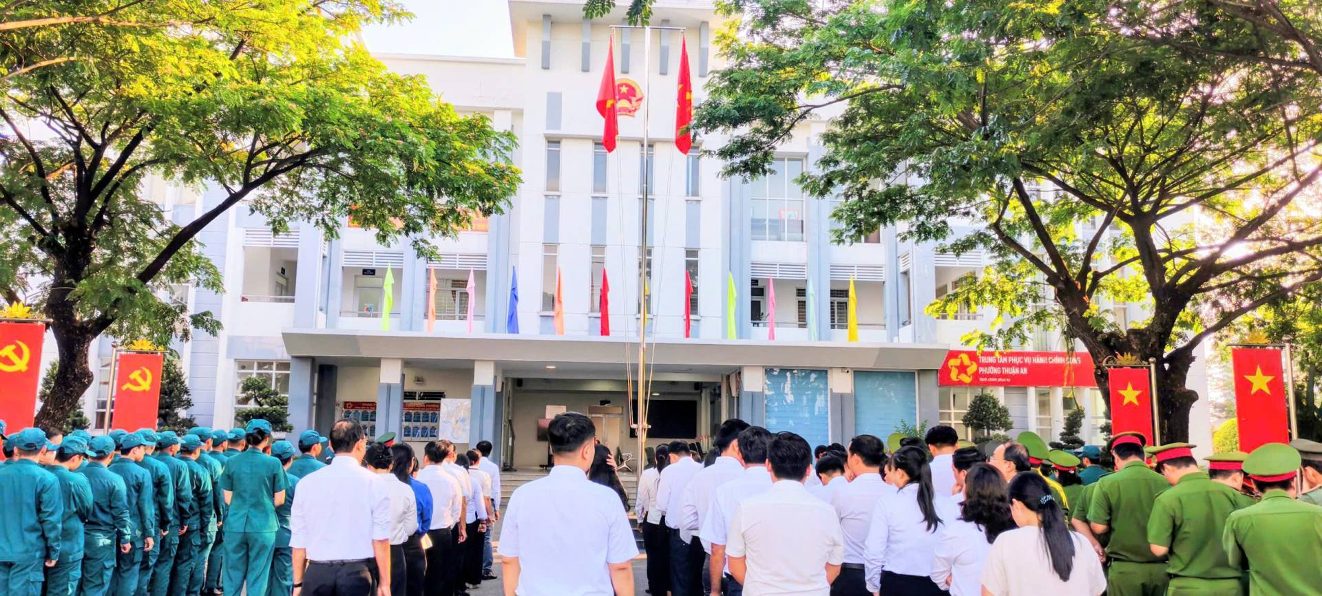 Sáng nay 06/04/2026, Đảng uỷ - HĐND - UBND - UB.MTTQ Việt Nam phường Thuận An tổ chức Lễ chào cờ tháng 04/2026 và tổ chức sinh nhật cho công đoàn viên có ngày sinh trong tháng 04.