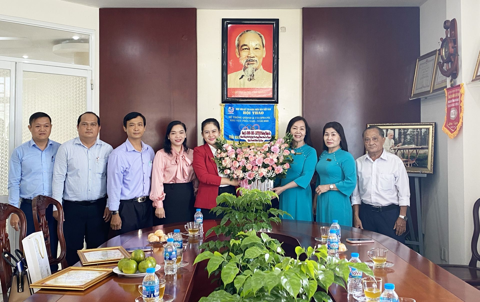 Lãnh đạo phường tặng hoa chúc mừng Quỹ tín dụng nhân dân An Thạnh