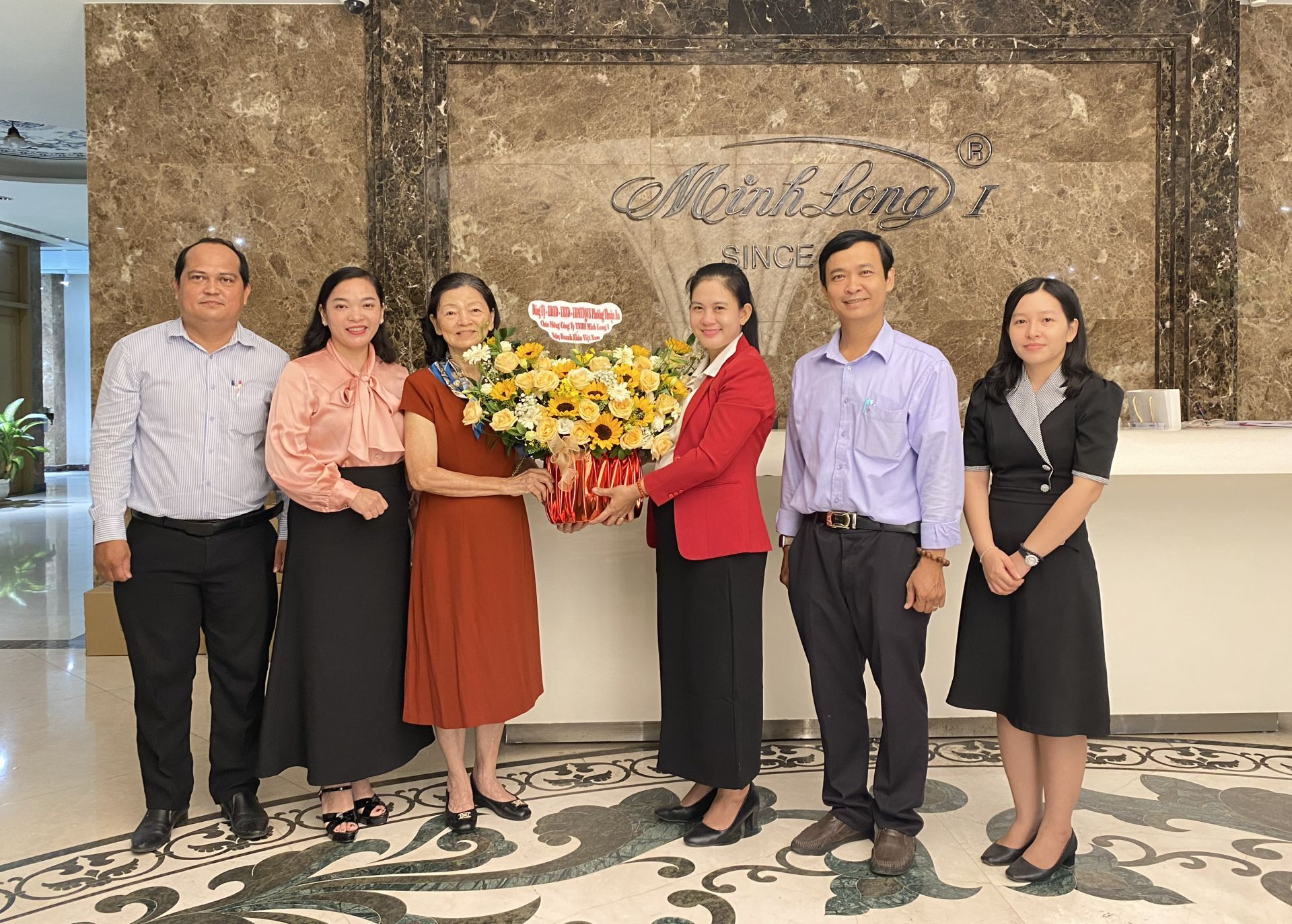 Lãnh đạo phường thăm hỏi và tặng hoa chúc mừng doanh nhân Lý Ngọc Dung tại Công ty TNHH Minh Long I