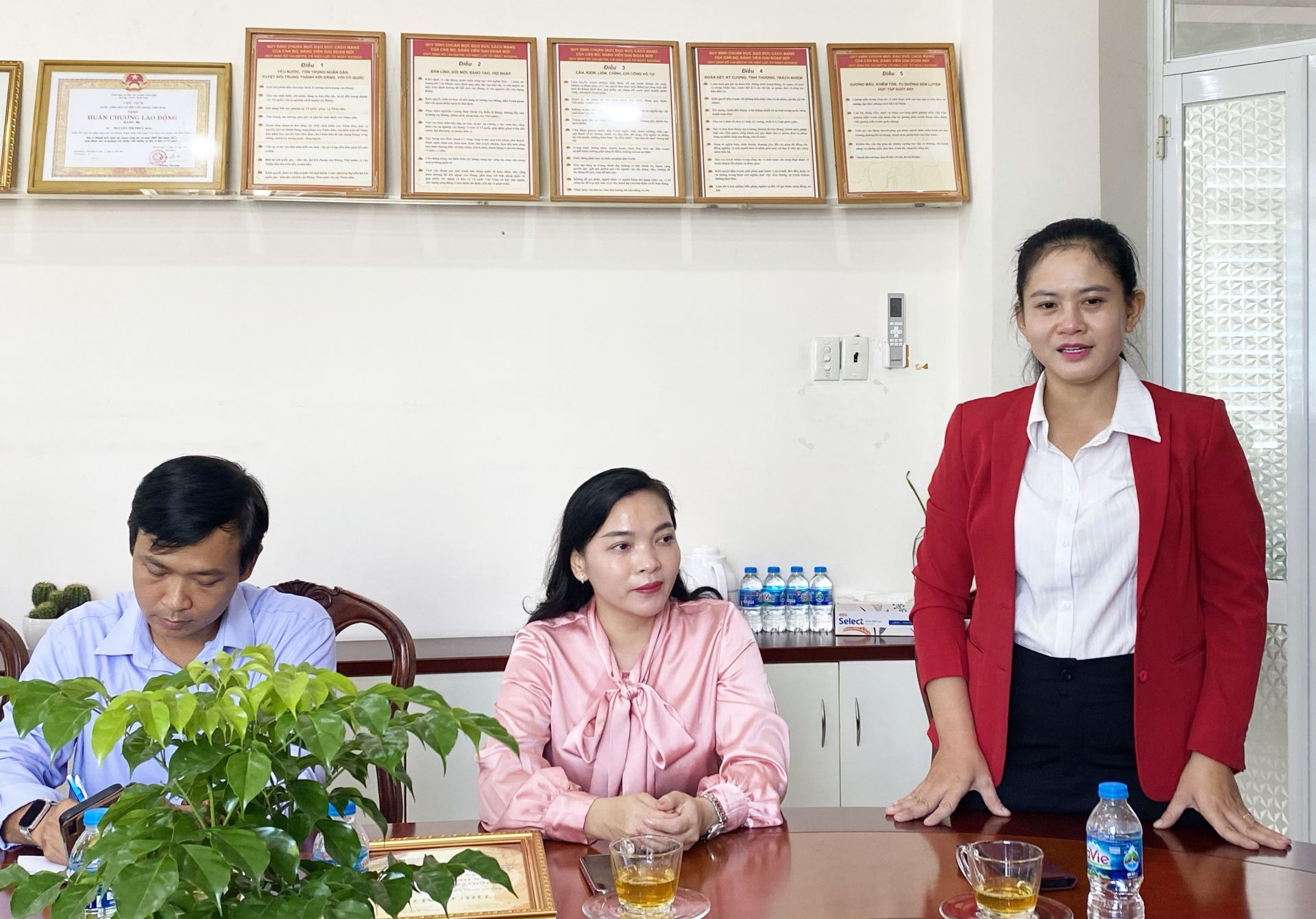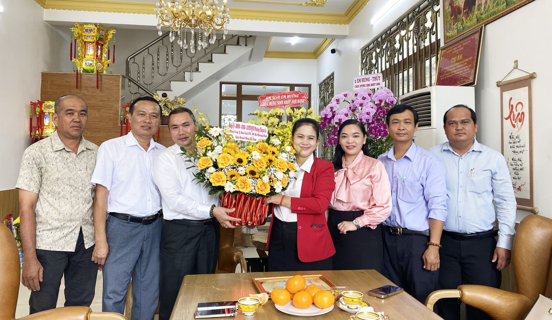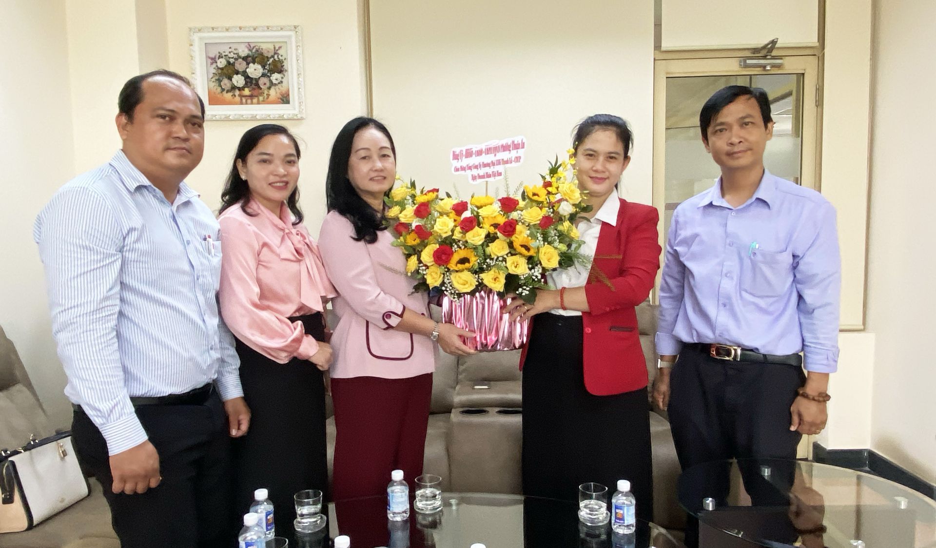 Lãnh đạo phường thăm hỏi và tặng hoa chúc mừng Tổng Giám đốc Phạm Thị Băng Trang tại Tổng Công ty Thương mại xuất nhập khẩu Thanh Lễ