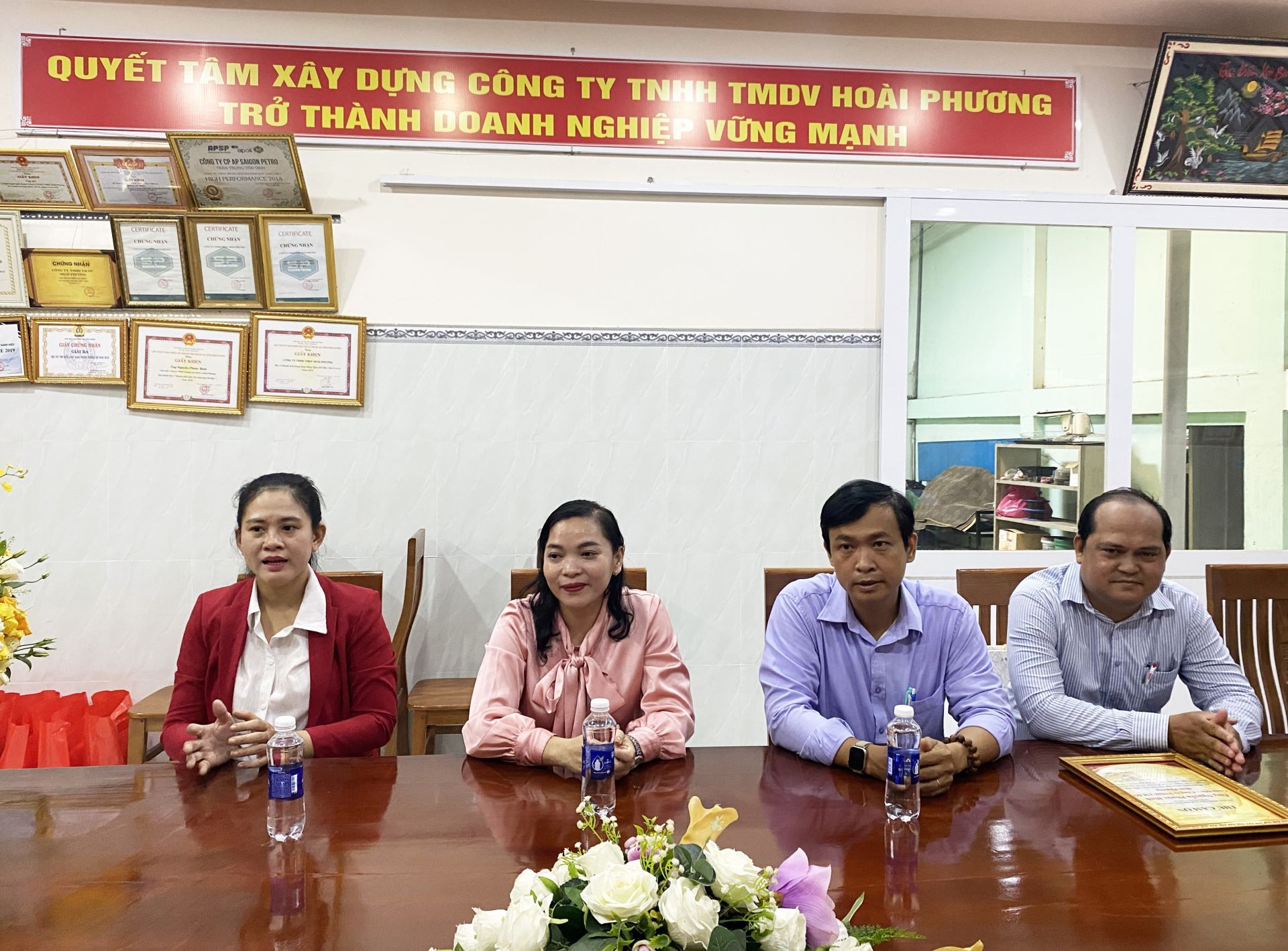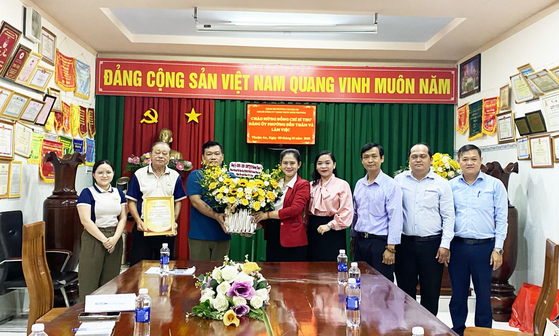 Lãnh đạo phường thăm hỏi và tặng hoa chúc mừng Công ty TNHH Dịch vụ thương mại Hoài Phương