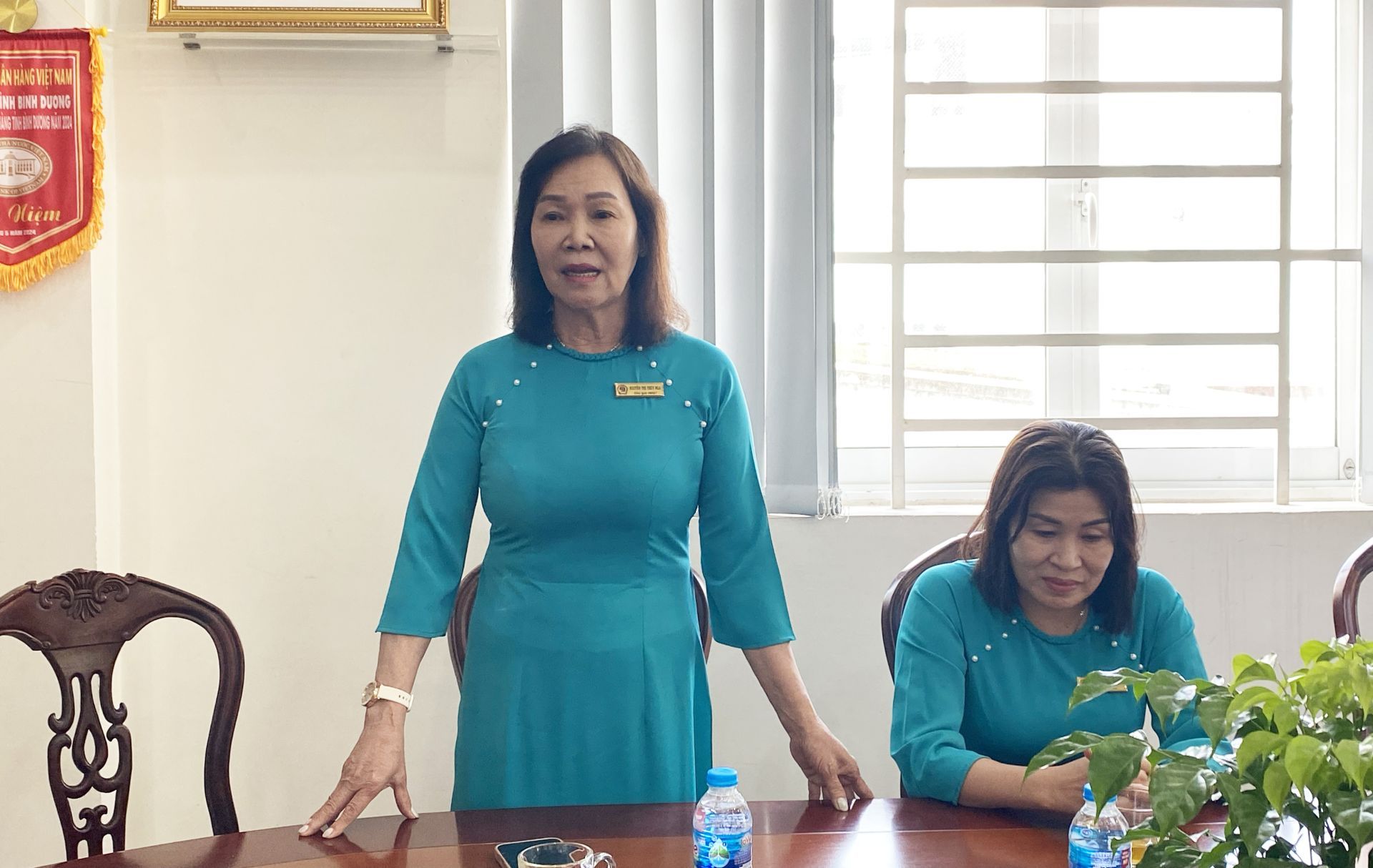 Bà Nguyễn Thị Thuý Nga - Chủ tịch Hội đồng quản trị Quỹ tín dụng nhân dân An Thạnh phát biểu