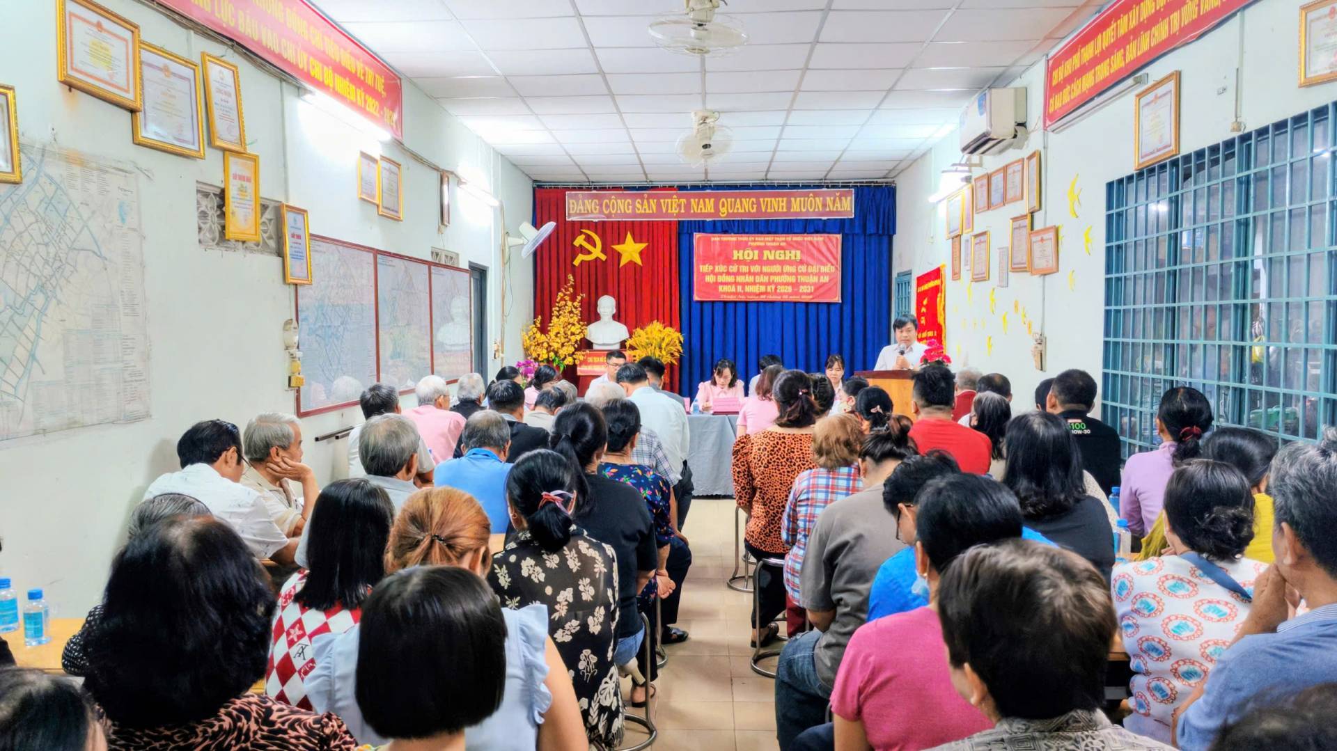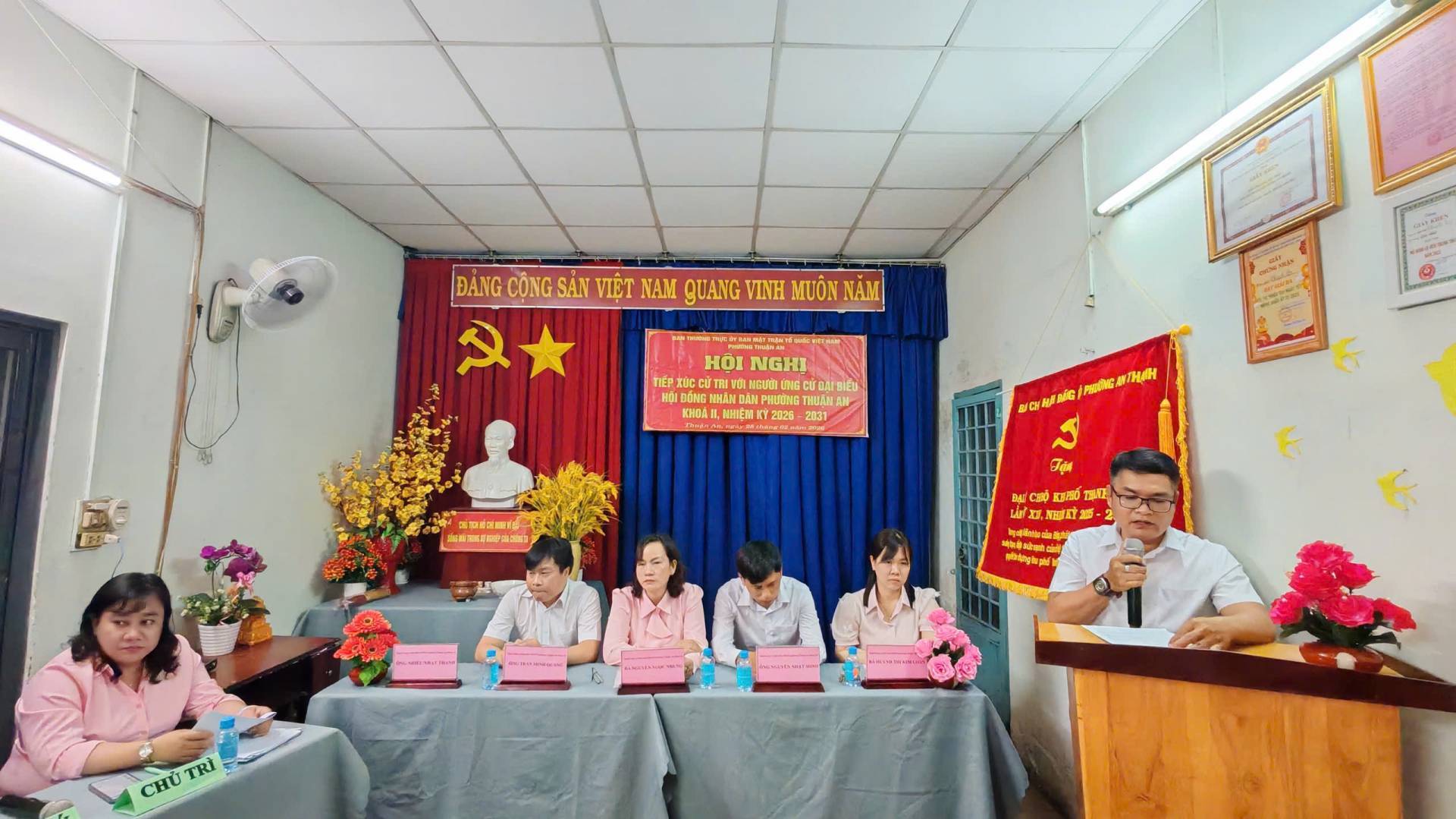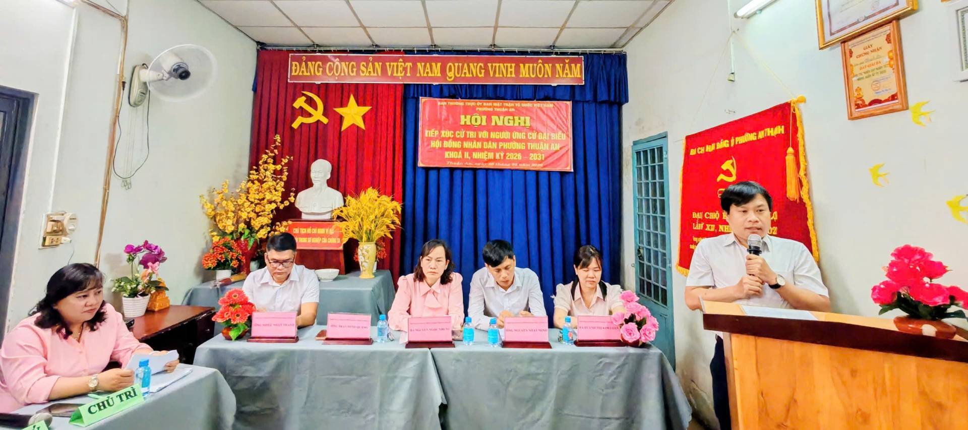 Tối ngày 28/02/2026, tại Văn phòng khu phố Thạnh Lợi, Ban Thường trực Ủy ban Mặt trận Tổ quốc (MTTQ) Việt Nam phường Thuận An tổ chức Hội nghị tiếp xúc cử tri với người ứng cử Đại biểu HĐND phường Thuận An Khoá II, nhiệm kỳ 2026 – 2031 (Đơn vị bầu cử số 5), để nghe những người ứng cử báo cáo trước cử tri về chương trình hành động của bản thân nếu được bầu vào đại biểu HĐND phường Thuận An.