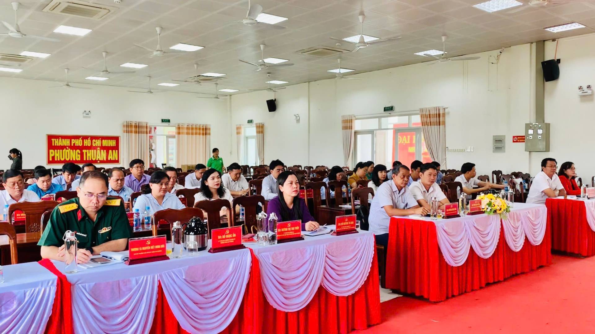 Tham dự có đồng chí Huỳnh Văn Sơn-Bí thư Đảng ủy, Chủ tịch HĐND phường; đồng chí Phan Thái Sơn- Phó Bí thư Thường trực Đảng ủy phường; đồng chí Nguyễn Thanh Sơn – Phó Bí thư Đảng ủy, Chủ tịch UBND phường; đồng chí Huỳnh Thị Thu Thủy- UVTV, Chủ tịch MTTQ Việt Nam phường; đồng chí Nguyễn Ngọc Nhung, UVTV, Phó Chủ tịch HĐND phường; đồng chí Đỗ Huỳnh Tú Anh, UVTV, Trưởng Ban Xây dựng Đảng, Trưởng ban kinh tế - ngân sách; đồng chí Ngô Tiến Đạt, Phó Chủ tịch UBND phường; đồng chí Lê Minh Đức - ĐUV, Trưởng Phòng Văn hóa - Xã hội phường; đồng chí Nguyễn Viết Minh Đức, Chỉ huy Trưởng Ban Chỉ huy Quân sự phường Thuận An.