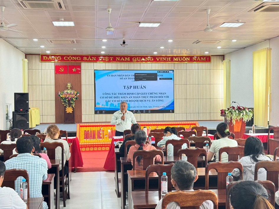 Ngày 23/4/2026, Ủy ban nhân dân phường Thuận An phối hợp với Sở An toàn thực phẩm Thành phố Hồ Chí Minh tổ chức lớp tập huấn về công tác thẩm định cấp Giấy chứng nhận cơ sở đủ điều kiện an toàn thực phẩm đối với các cơ sở kinh doanh dịch vụ ăn uống trên địa bàn.