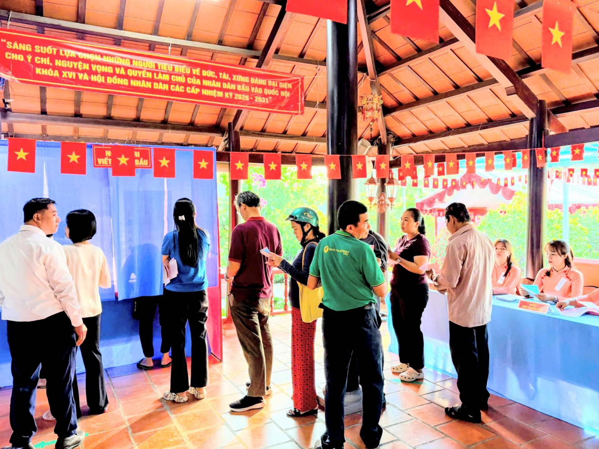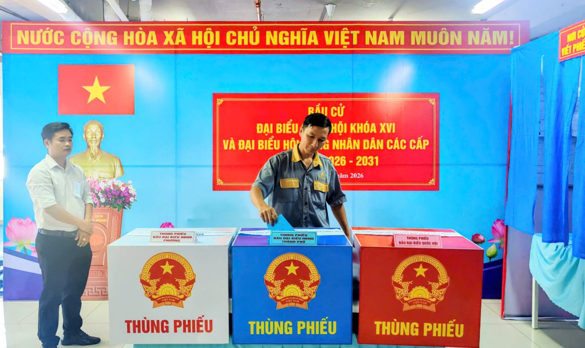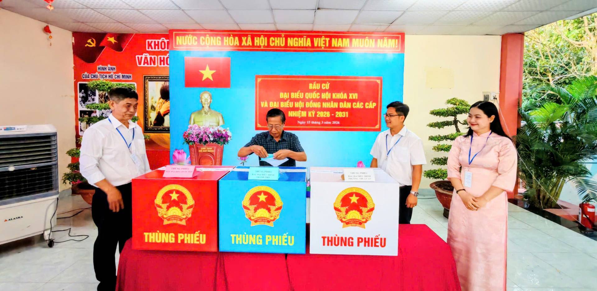 Hoạt động bỏ phiếu bắt đầu từ 7h sáng và kết thúc lúc 19h ngày 15/03/2026. Mỗi cử tri có quyền bỏ 1 phiếu bầu cử đại Quốc hội và bỏ 1 phiếu bầu đại biểu HĐND tương ứng với mỗi cấp HĐND và mình được tham gia bầu cử.