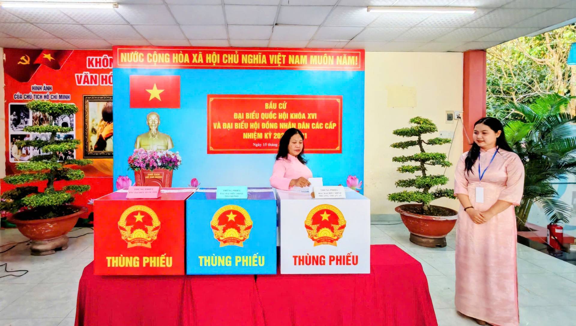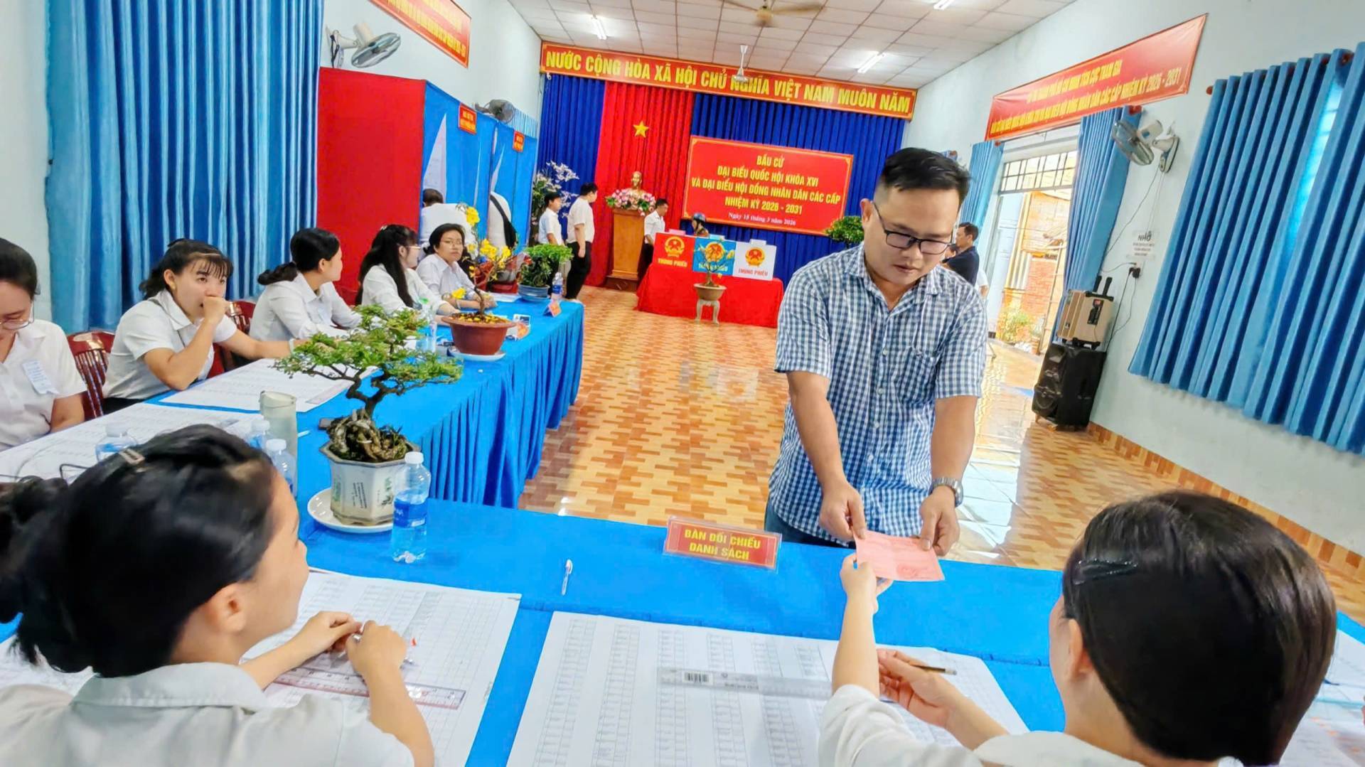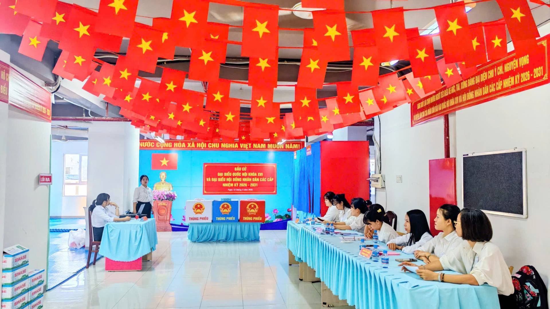 Hoạt động bỏ phiếu bắt đầu từ 7h sáng và kết thúc lúc 19h ngày 15/03/2026. Mỗi cử tri có quyền bỏ 1 phiếu bầu cử đại Quốc hội và bỏ 1 phiếu bầu đại biểu HĐND tương ứng với mỗi cấp HĐND và mình được tham gia bầu cử.