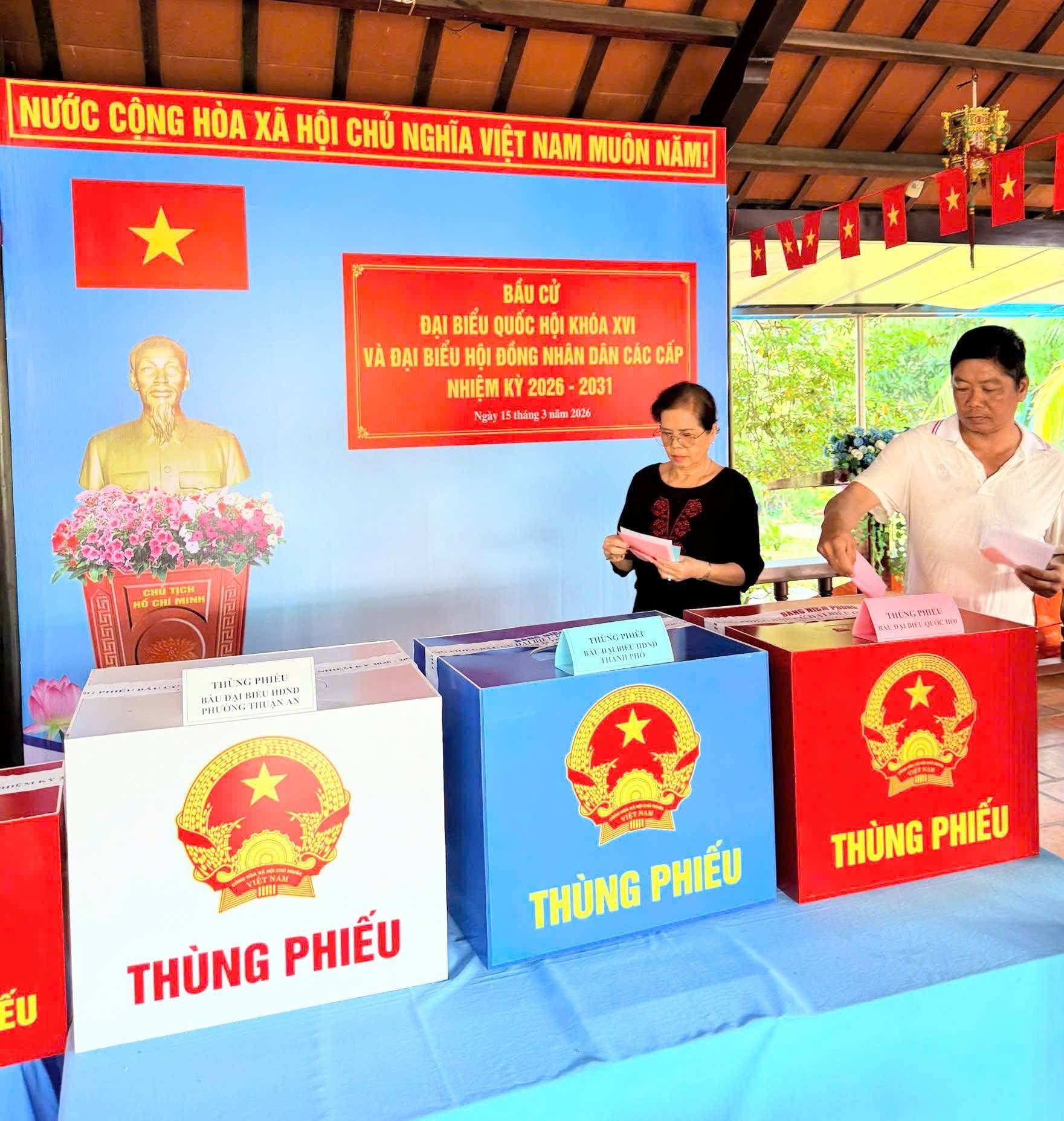 Sáng nay 15/03/2026, hòa trong không khí tưng bừng, phấn khởi của Ngày hội toàn dân, cử tri trên địa bàn phường Thuận An tại 26 khu vực bỏ phiếu bầu cử đã hăng hái, vui mừng đi bỏ phiếu đại biểu Quốc hội khóa XVI và đại biểu HĐND các cấp nhiệm kỳ 2026-2031.