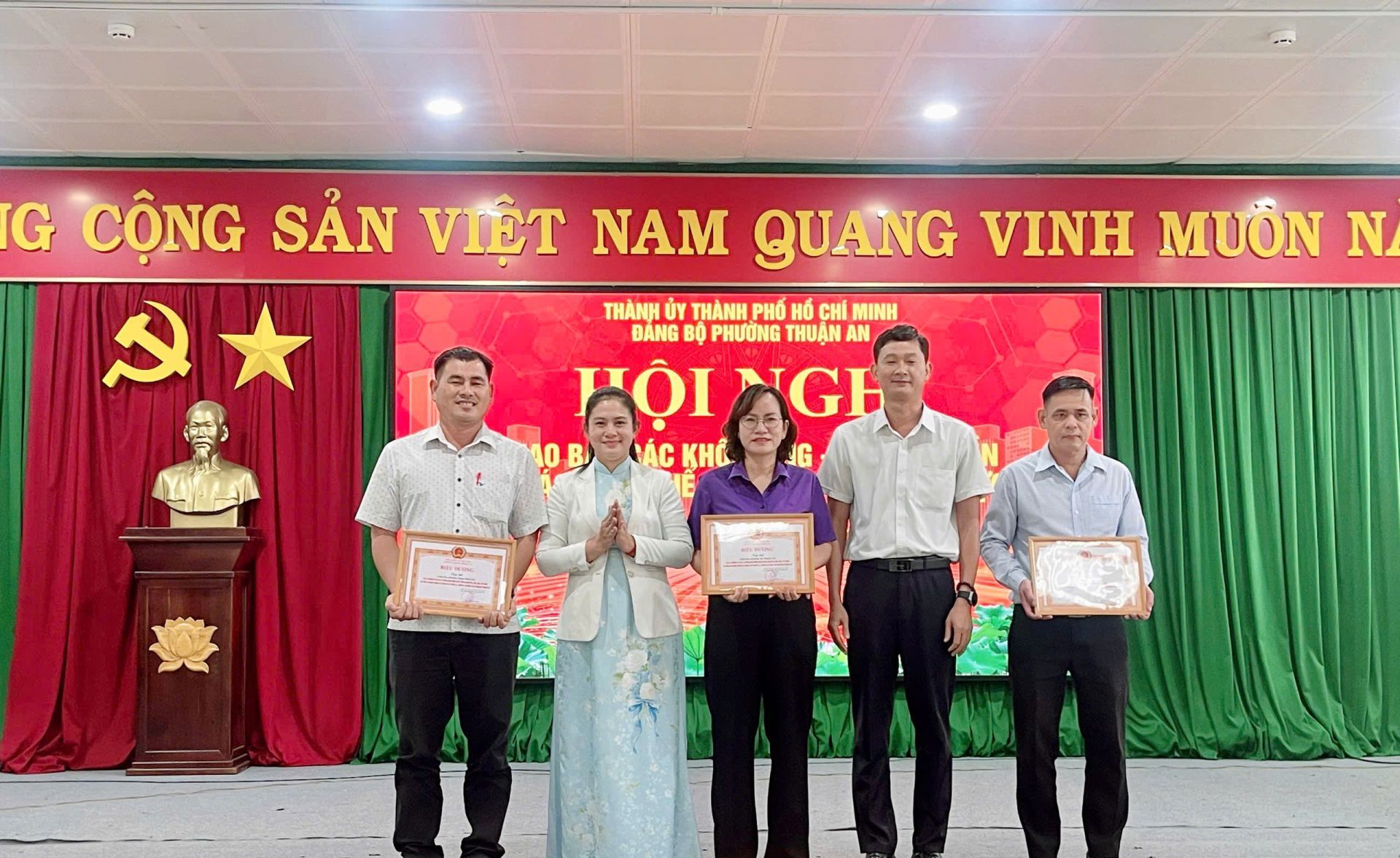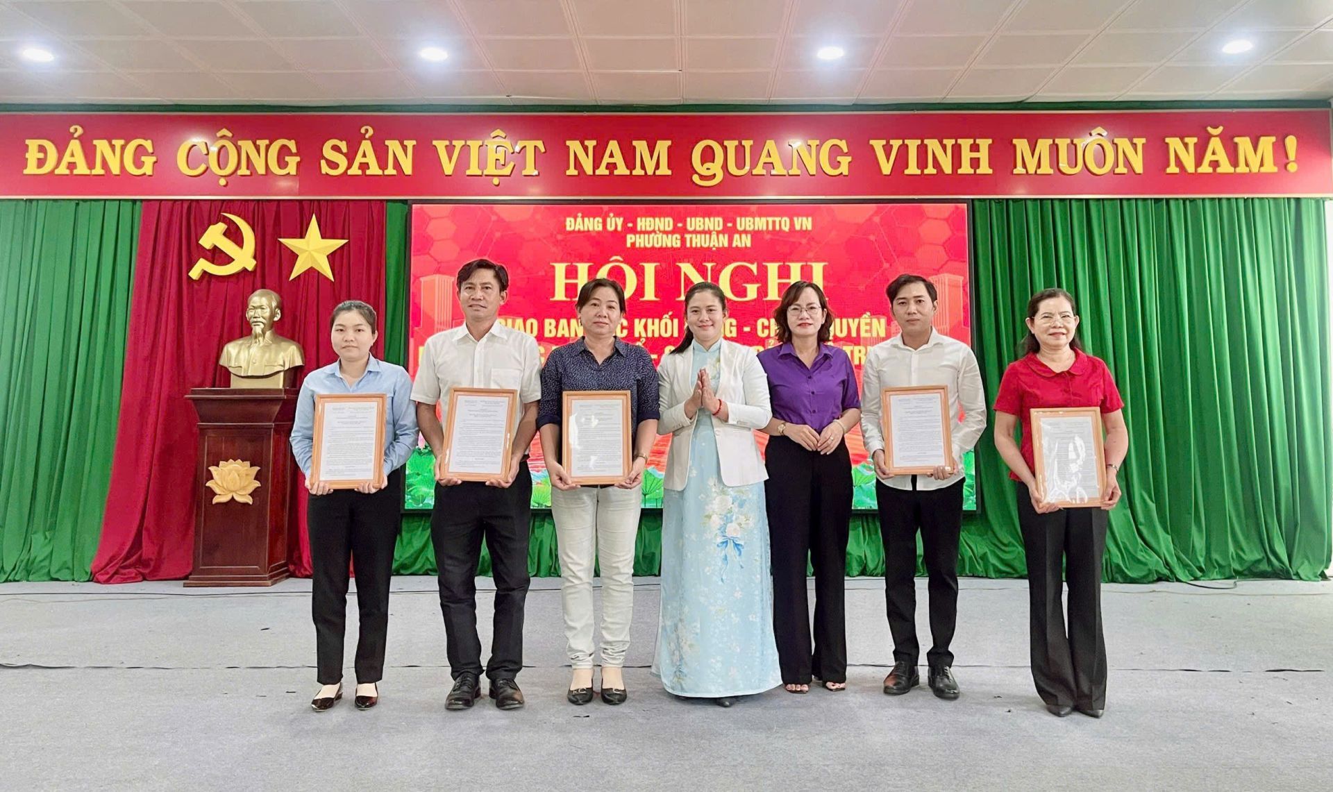 Cũng tại hội nghị UB.MTTQVN phường phát động đợt thi đua cao điểm “100 ngày hoạt động tinh - gọn - mạnh - hiệu năng - hiệu lực - hiệu quả”, UBND Phường đã tổ chức Lễ phát động triển khai phong trào “Bình dân học vụ số” hướng dẫn cài đặt ứng dụng “Công dân số thành phố Hồ Chí Minh – Kết nối công dân và Chính quyền”, Đảng ủy phường Thuận An đã tuyên dương cho 03 tập thể và 10 cá nhân có thành tích đóng góp trong việc thực hiện mô hình chính quyền 02 cấp trên địa bàn phường.