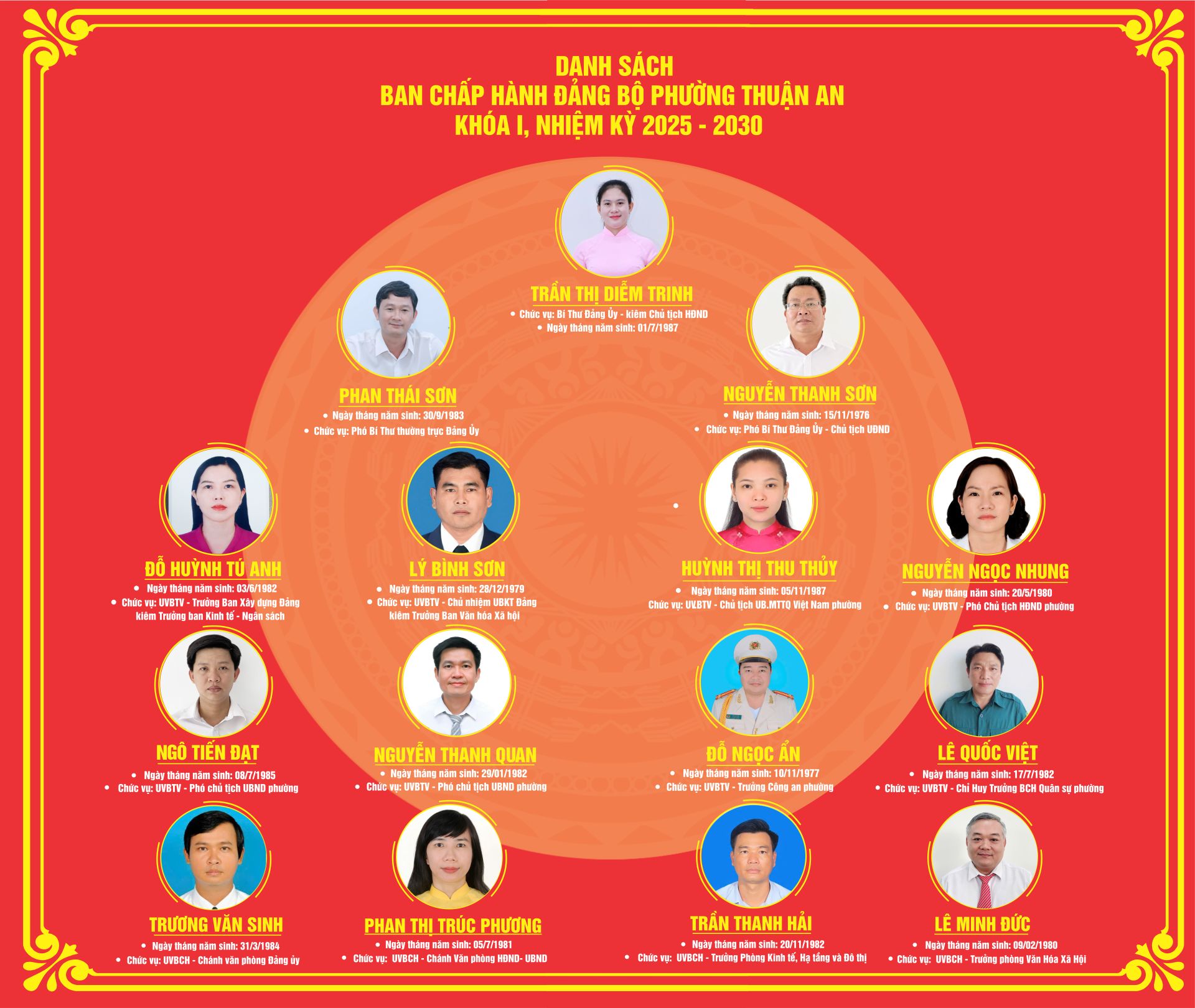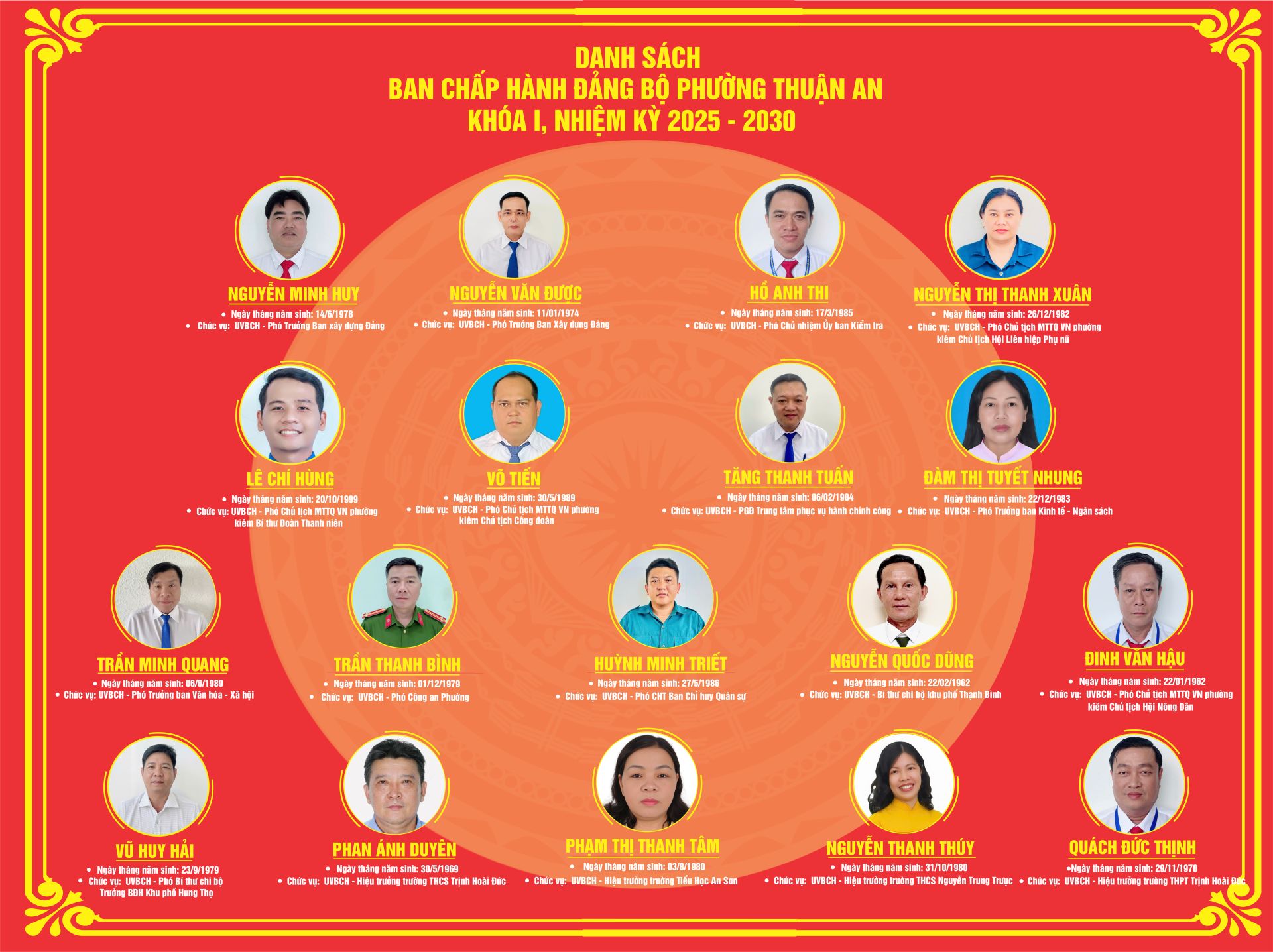 DANH SÁCH BCH ĐẢNG BỘ PHƯỜNG THUẬN AN KHÓA I, NHIỆM KỲ 2025 - 2030