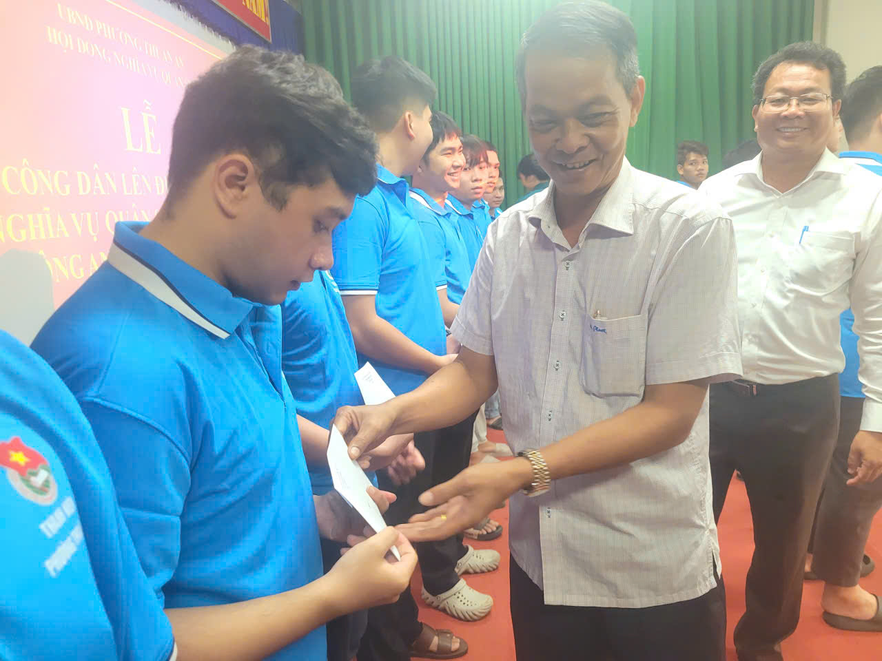 Tham dự có đồng chí Huỳnh Văn Sơn – Bí thư Đảng ủy, Chủ tịch HĐND phường; đồng chí Nguyễn Thanh Sơn – Phó Bí thư Đảng ủy, Chủ tịch UBND phường, Chủ tịch Hội đồng Nghĩa vụ Quân sự phường; cùng các Thành viên Hội đồng Nghĩa vụ Quân sự phường; Bí thư chi bộ, Trưởng khu phố, khu đội trưởng khu phố, gia đình và các thanh niên trúng tuyển nghĩa vụ quân sự năm 2026.