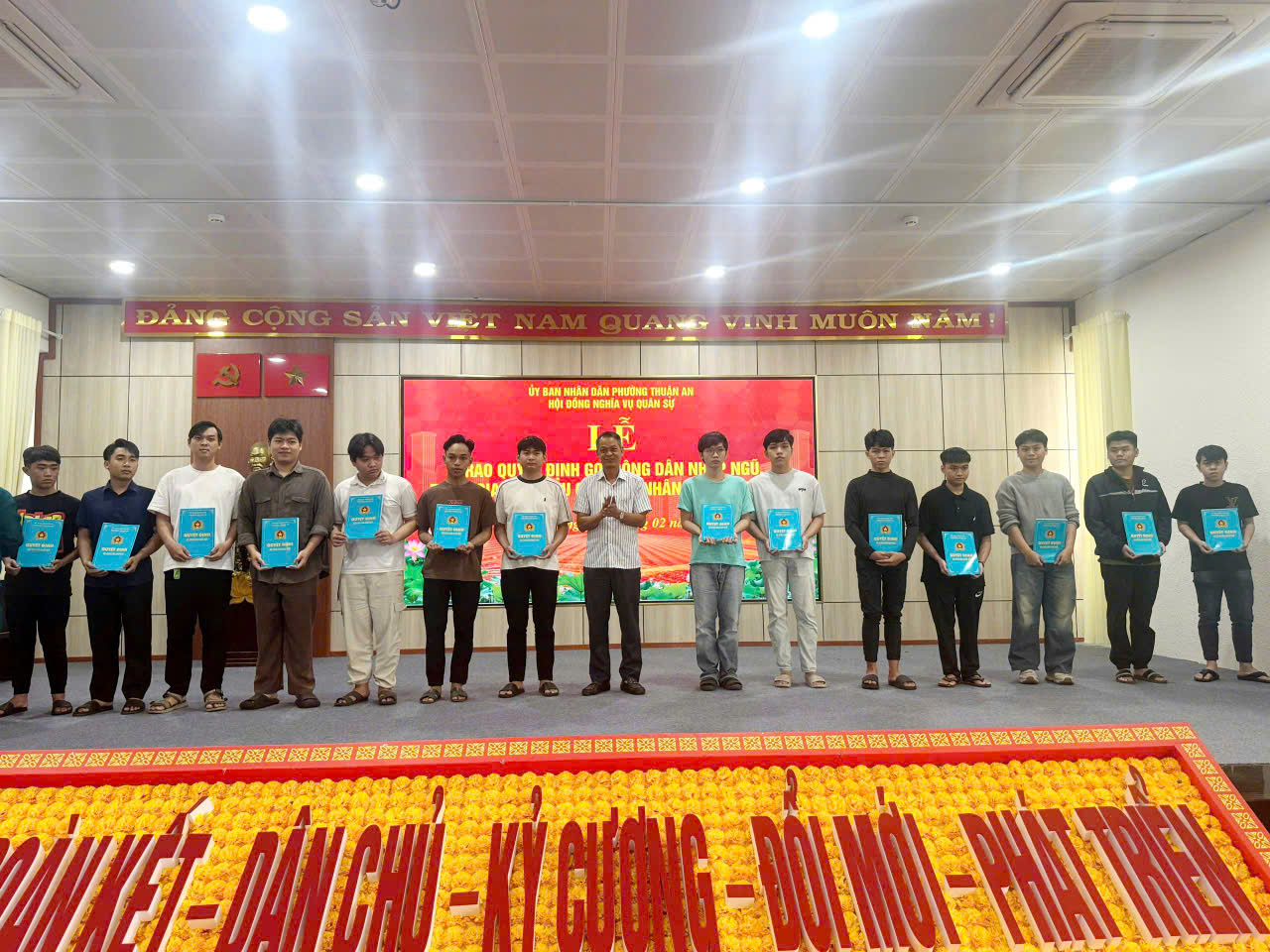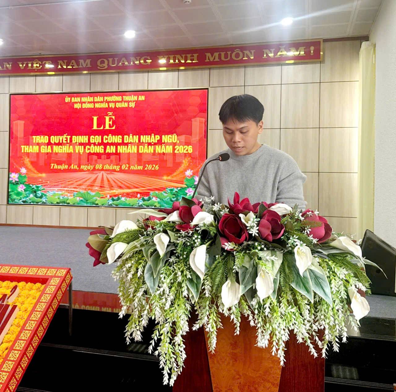HỘI ĐỒNG NGHĨA VỤ QUÂN SỰ PHƯỜNG THUẬN AN TỔ CHỨC TRAO QUYẾT ĐỊNH GỌI CÔNG DÂN NHẬP NGŨ NĂM 2026