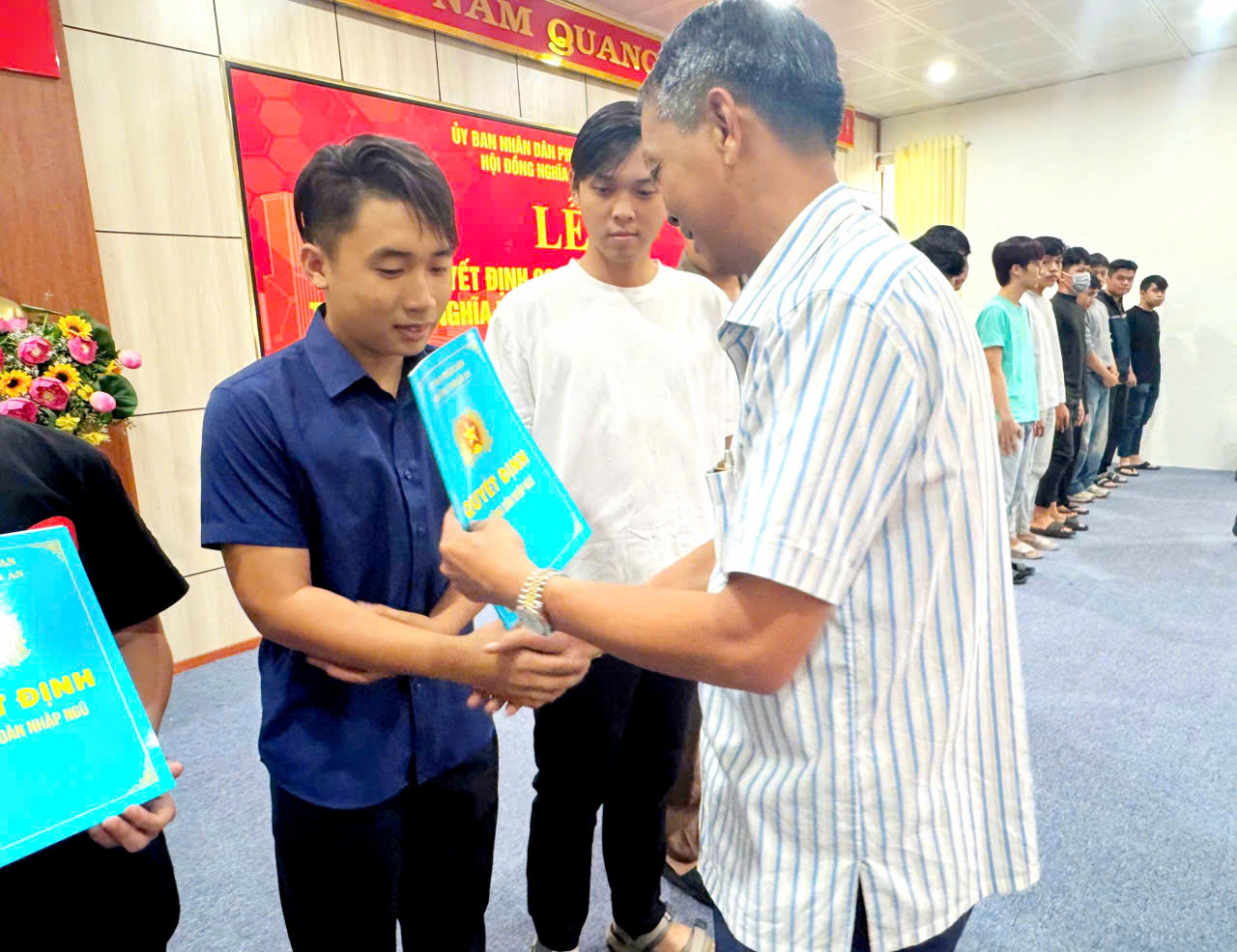 Thanh niên nhận Quyết định gọi công dân thực hiện nghĩa vụ Quân sự và nghĩa vụ