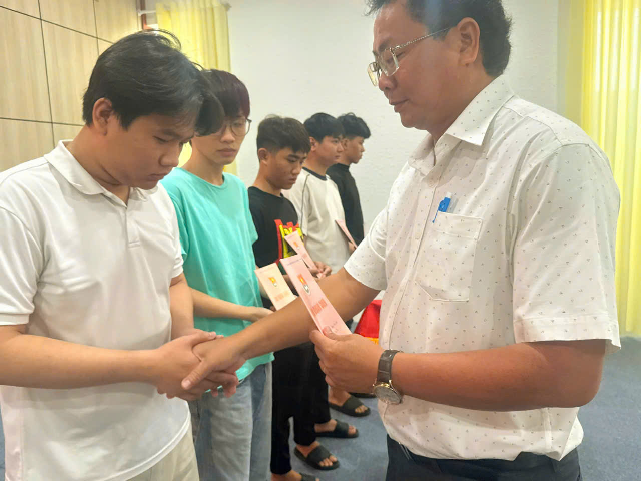 Lãnh đạo tặng quà cho thanh niên