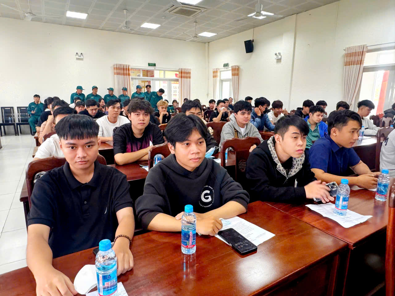 Thành viên Hội đồng NVQS phường dự Hội nghị trao Quyết định gọi công nhân nhập ngũ năm 2026