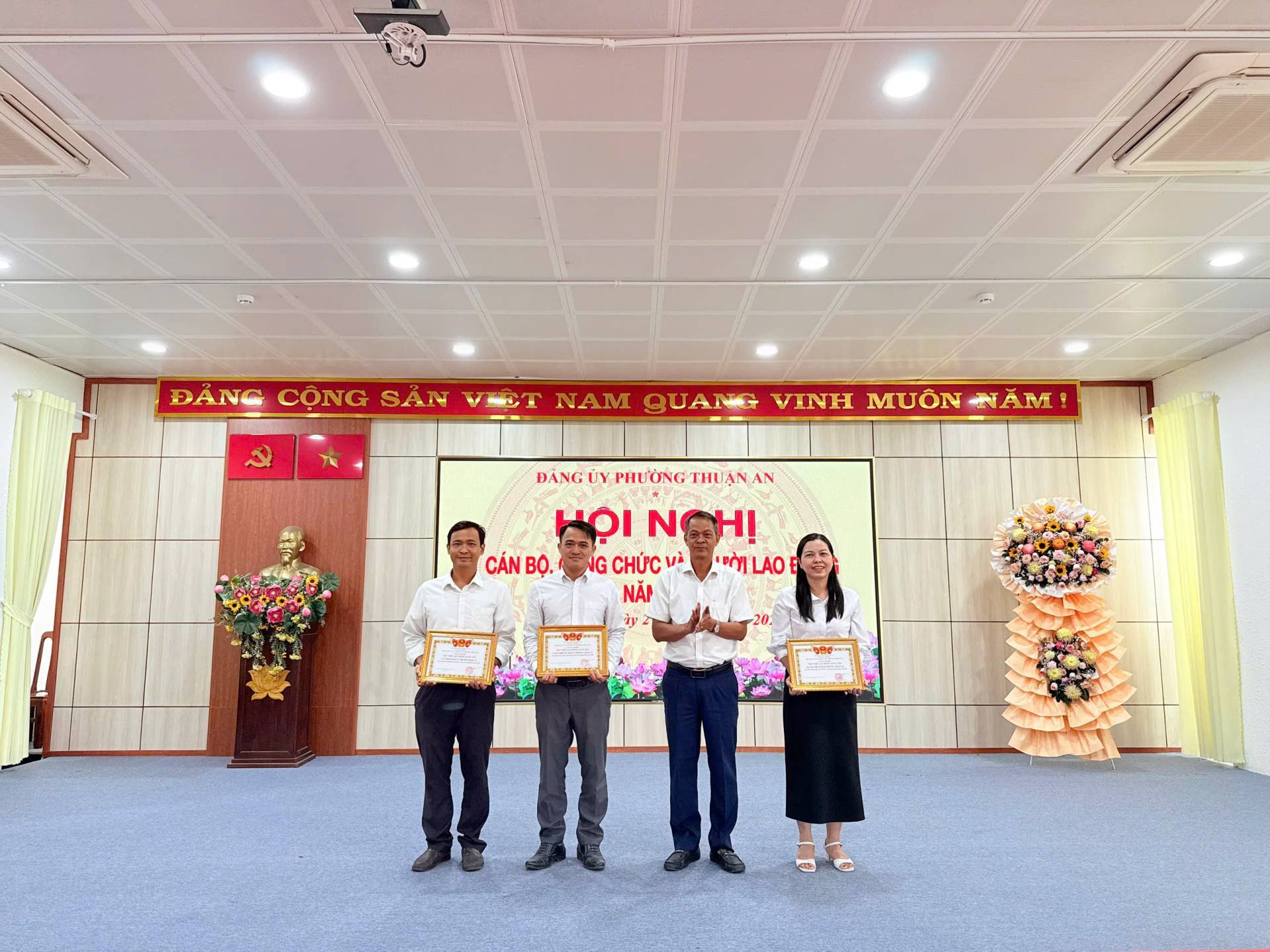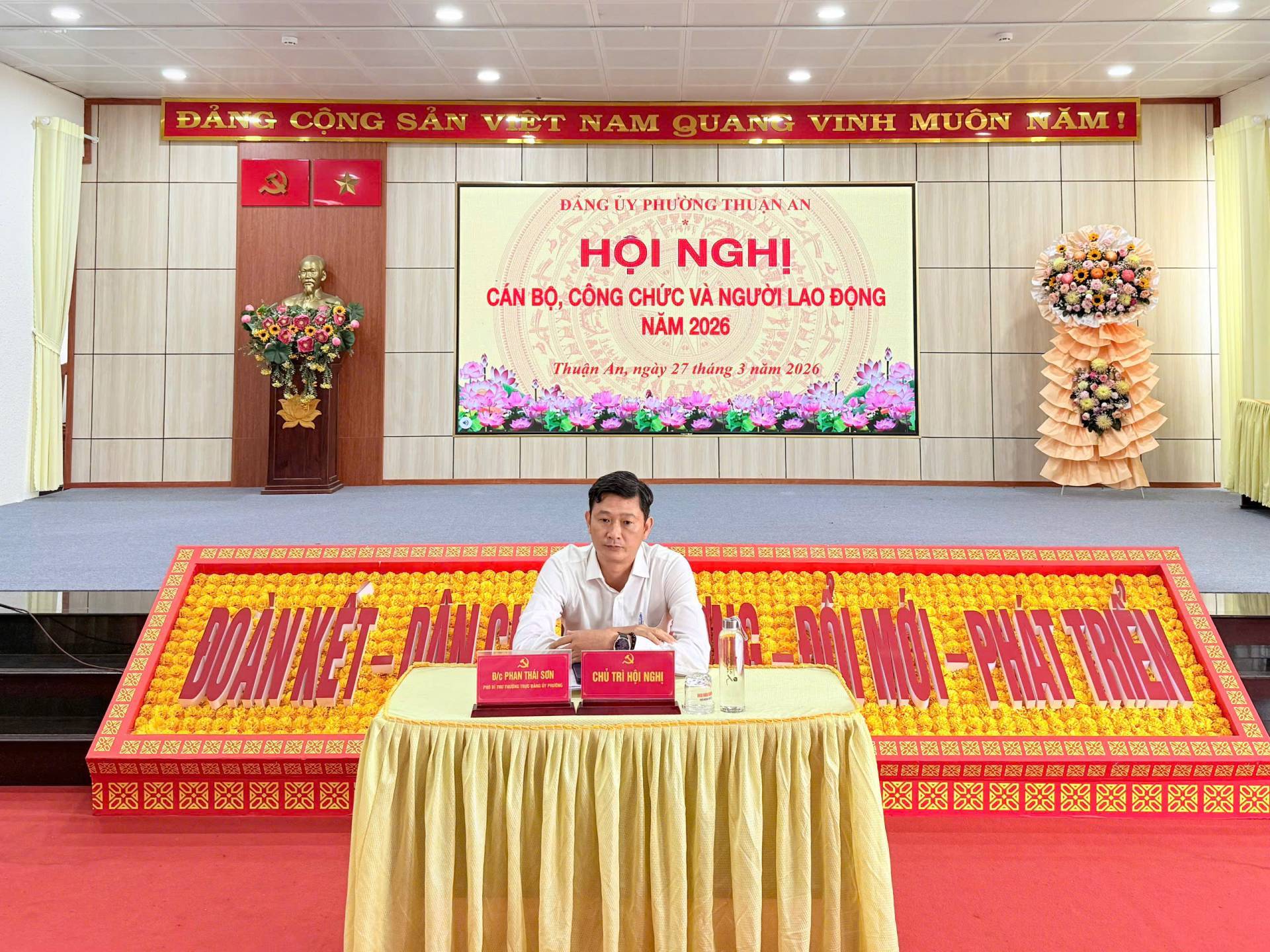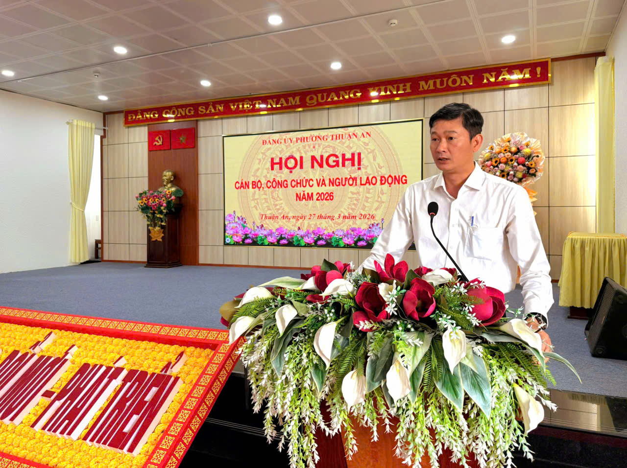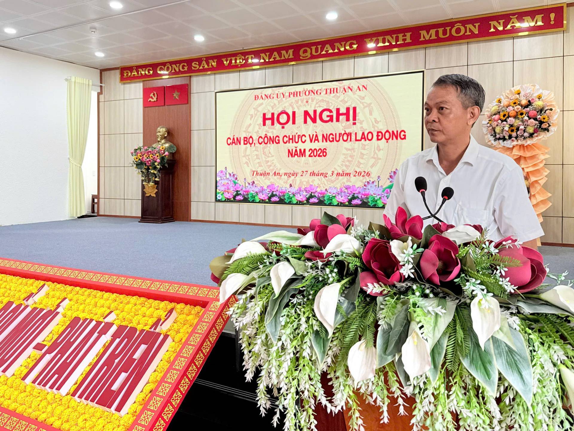 Sáng ngày 27/3/2026, Đảng ủy phường Thuận An tổ chức Hội nghị cán bộ, công chức và người lao động khối Đảng năm 2026. Hội nghị được tổ chức nhằm phát huy quyền dân chủ, tinh thần đoàn kết và sáng tạo của tập thể cán bộ, công chức; đồng thời tổng kết công tác năm 2025 và đề ra phương hướng nhiệm vụ năm 2026.