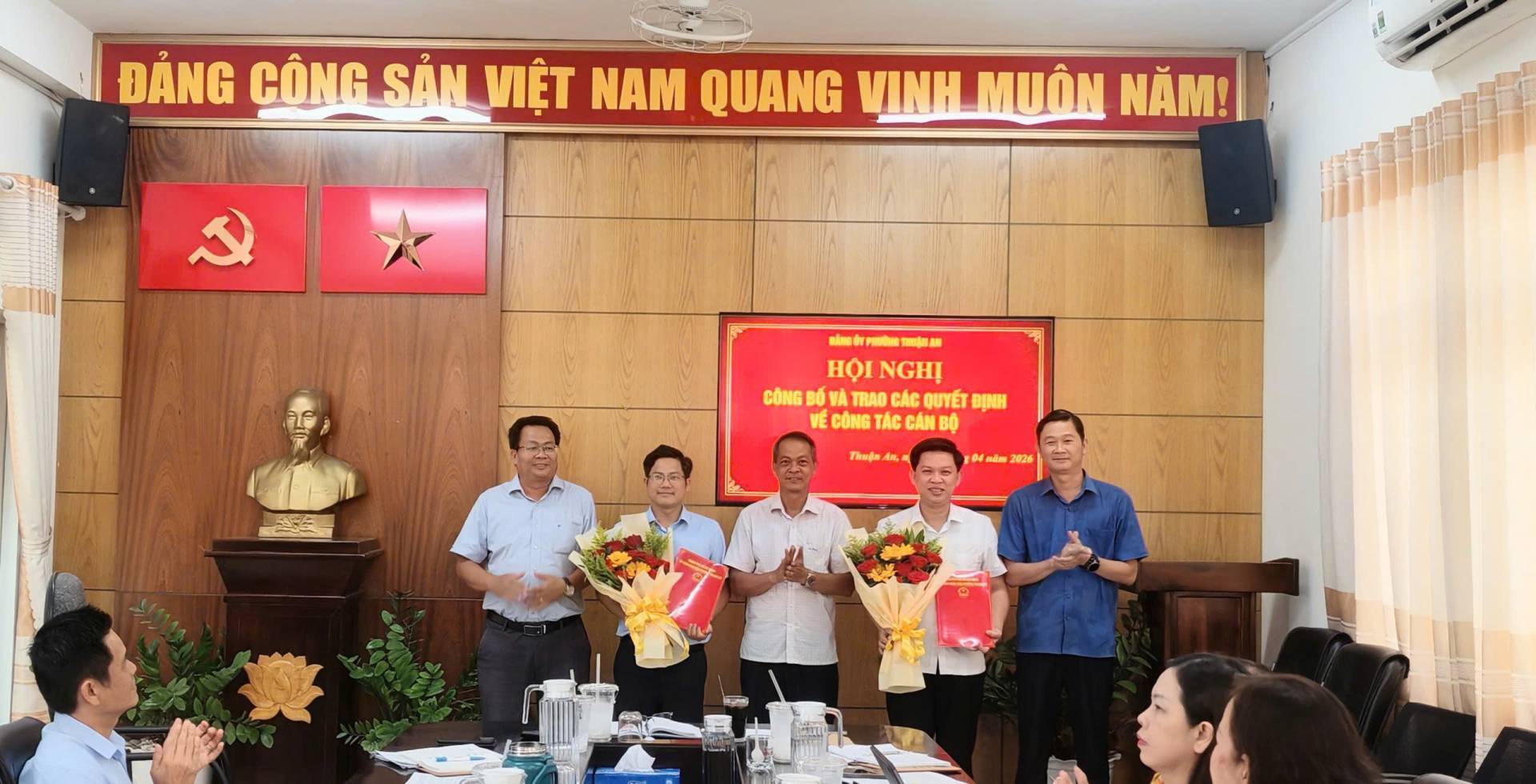 Chiều ngày 08/04/2026, Đảng ủy, UBND phường Thuận An tổ chức Hội nghị công bố và trao quyết định công tác cán bộ. Dự hội nghị có đồng chí Huỳnh Văn Sơn - Bí thư Đảng ủy, Chủ tịch HĐND phường; đồng chí Phan Thái Sơn- Phó Bí thư Thường trực Đảng ủy phường; đồng chí Nguyễn Thanh Sơn – Phó Bí thư Đảng ủy, Chủ tịch UBND phường; đồng chí Huỳnh Thị Thu Thủy- UVTV, Chủ tịch MTTQ Việt Nam phường; đồng chí Nguyễn Ngọc Nhung, UVTV, Phó Chủ tịch HĐND phường; đồng chí Đỗ Huỳnh Tú Anh- UVTV, Trưởng BXD Đảng; đồng chí Ngô Tiến Đạt- UVTV, Phó Chủ tịch UBND phường; đồng chí Nguyễn Thanh Quan- UVTV, Phó Chủ tịch UBND phường; đồng chí Lê Minh Đức - ĐUV, Trưởng Phòng Văn hóa - Xã hội phường; đồng chí Đỗ Ngọc Ẩn- UVTV, Trưởng Công an phường.