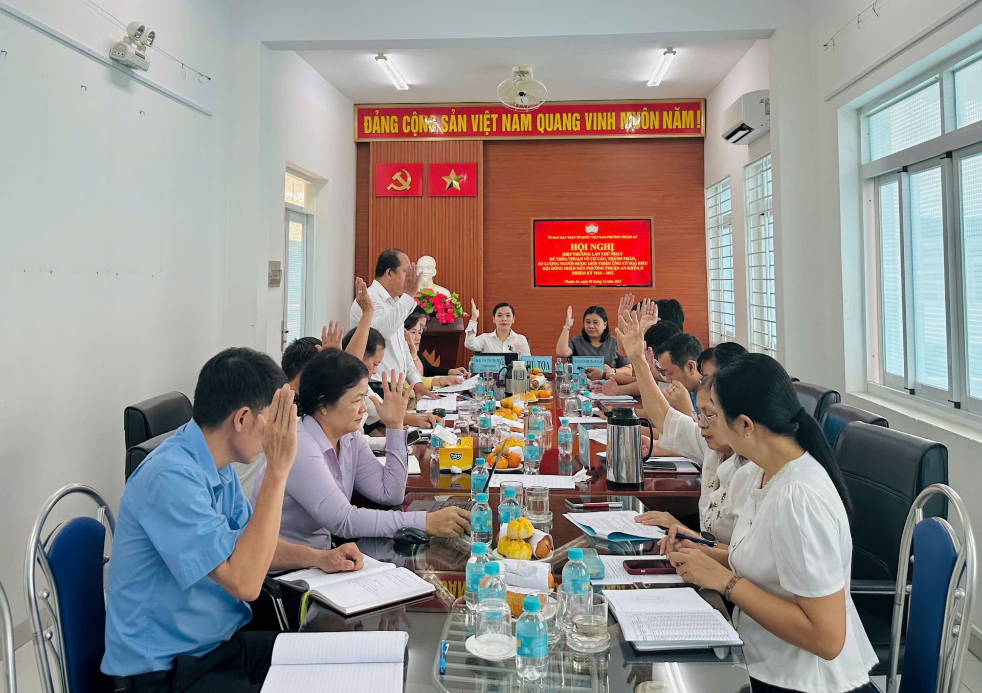 Sáng ngày 05/12/2025, tại phòng họp Ủy ban MTTQ Việt Nam phường phường Thuận An, Ban Thường trực Ủy ban MTTQ Việt Nam phường đã tổ chức Hội nghị hiệp thương lần thứ nhất nhằm thỏa thuận về cơ cấu, thành phần, số lượng người được giới thiệu ứng cử đại biểu Hội đồng nhân dân phường Thuận An khóa II, nhiệm kỳ 2026 – 2031.