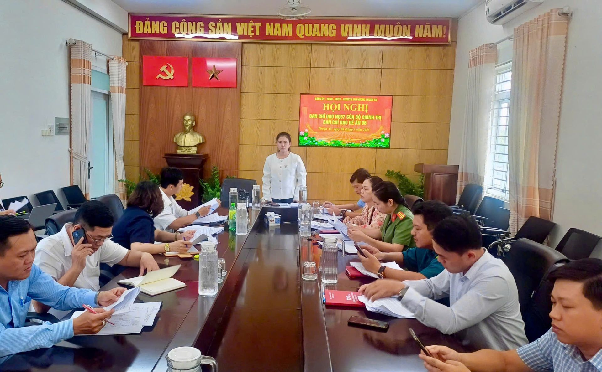 Chiều ngày 04/9/2025 phường Thuận An tổ chức Hội nghị họp Ban chỉ đạo Nghị quyết 57 của Bộ chính trị, Đề án 06 nhằm thông qua dự thảo Kế hoạch hành động thực hiện Nghị quyết số 57 của Bộ chính trị về đột phá phát triển khoa học, công nghệ, đổi mới sáng tạo và chuyển đổi số quốc gia trên địa bàn.