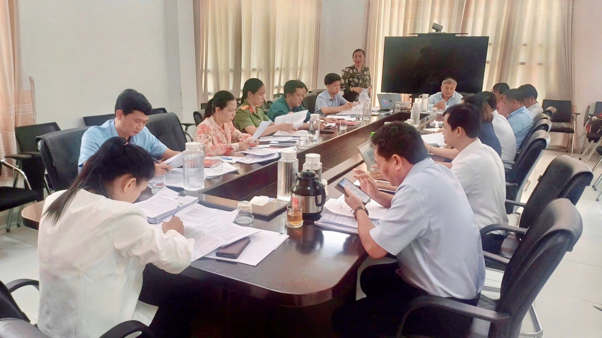 Chủ trì Hội nghị có đồng chí Trần Thị Diễm Trinh- Thành ủy viên, Bí thư Đảng ủy, Chủ tịch HĐND phường, Trưởng Ban chỉ đạo phường; đồng chí Phan Thái Sơn, Phó Bí thư thường trực Đảng ủy phường; đồng chí Nguyễn Thanh Sơn- Phó Bí thư Đảng ủy, Chủ tịch UBND phường Thuận An cùng các đồng chí trong Ban chỉ đạo phường Thuận An.