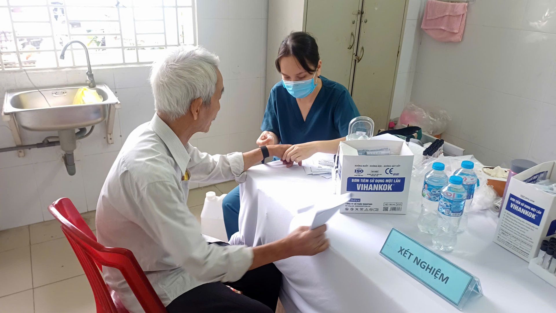 Đội ngũ y, bác sĩ Trung tâm y tế khu vực Thuận An và Trạm y tế phường tiến hành thăm khám tổng quát, khám lâm sàng, cận lâm sàng đồng thời hướng dẫn việc chăm sóc sức khỏe cho người cao tuổi từ 60 tuổi trở lên. Qua đó đội ngũ y, bác sĩ đã tiến hành từ các bước cơ bản như: khám mắt, thực hiện các xét nghiệm về mỡ máu, đường huyết, chức năng thận, siêu âm tổng quát,… đồng thời được tư vấn về chế độ ăn uống hợp lý, các kiến thức về tập luyện thể dục thể thao phù hợp gắn với các hoạt động giải trí để tăng cường sức khỏe và phòng ngừa bệnh tật. Đặc biệt, khi có phát hiện các dấu hiệu nghi ngờ bệnh lý trong quá trình khám, người cao tuổi sẽ được tư vấn chuyên sâu và giới thiệu đến các cơ sở y tế tuyến trên để thực hiện các xét nghiệm và chẩn đoán chuyên biệt.
