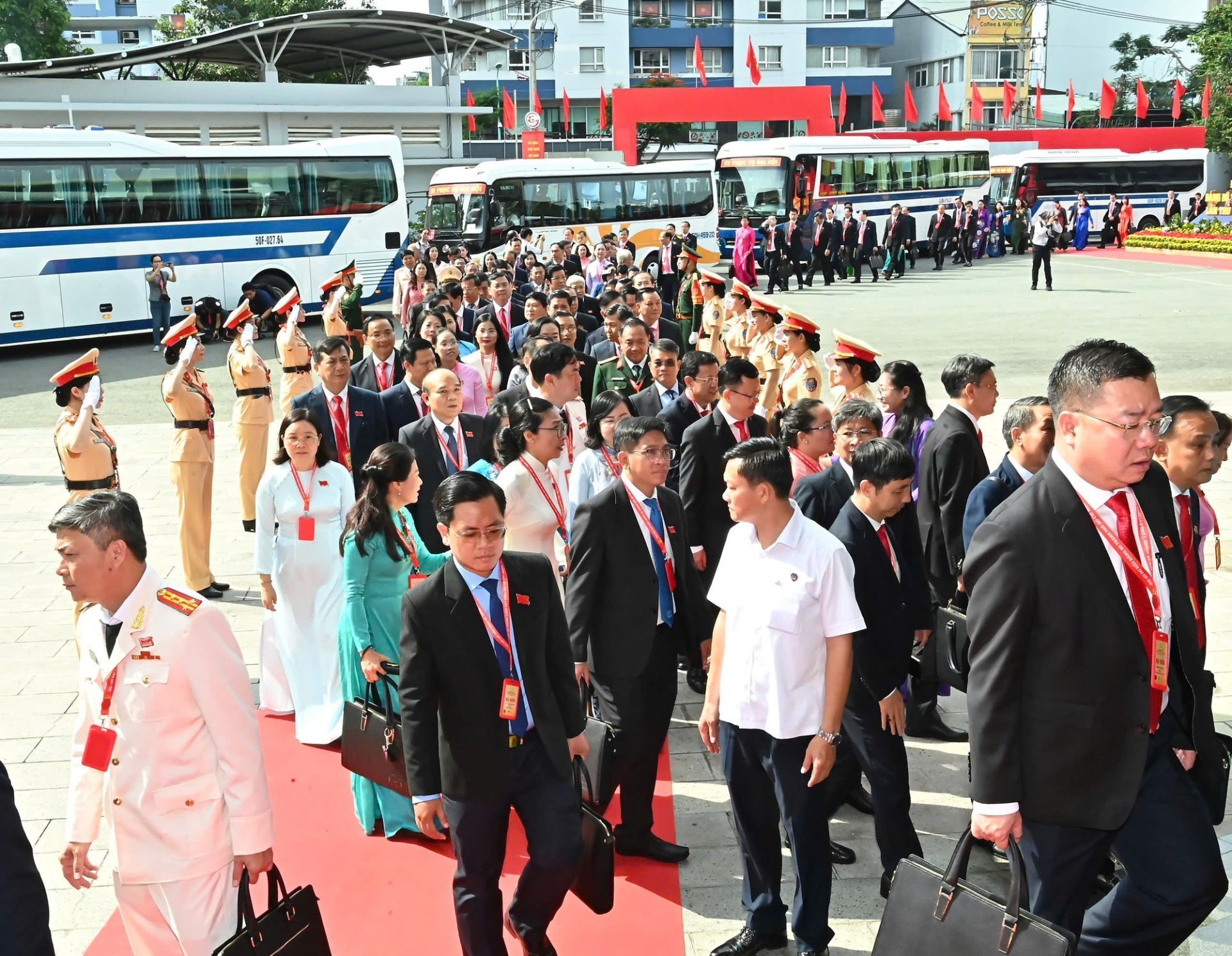 Các đại biểu vào hội trường để dự phiên trù bị Đại hội đại biểu Đảng bộ TP.Hồ Chí Minh lần thứ nhất