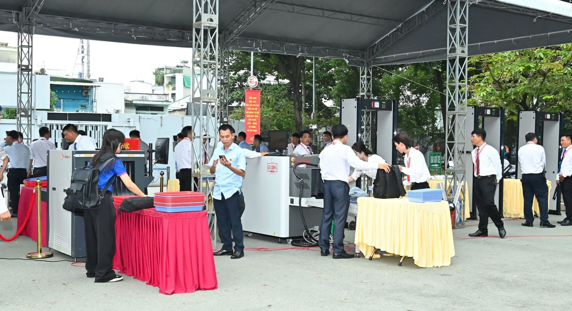 Đại hội lần này được quán triệt là đại hội chuyển đổi số toàn diện, vì vậy ngay từ khu vực sảnh vào kiểm tra an ninh, các thiết bị công nghệ hỗ trợ kiểm soát, điểm danh đại biểu luôn sẵn sàng. Nhân viên kỹ thuật vẫn túc trực để đảm bảo các thiết bị hoạt động ổn định cũng như xử lý tình huống ngay khi gặp trục trặc.