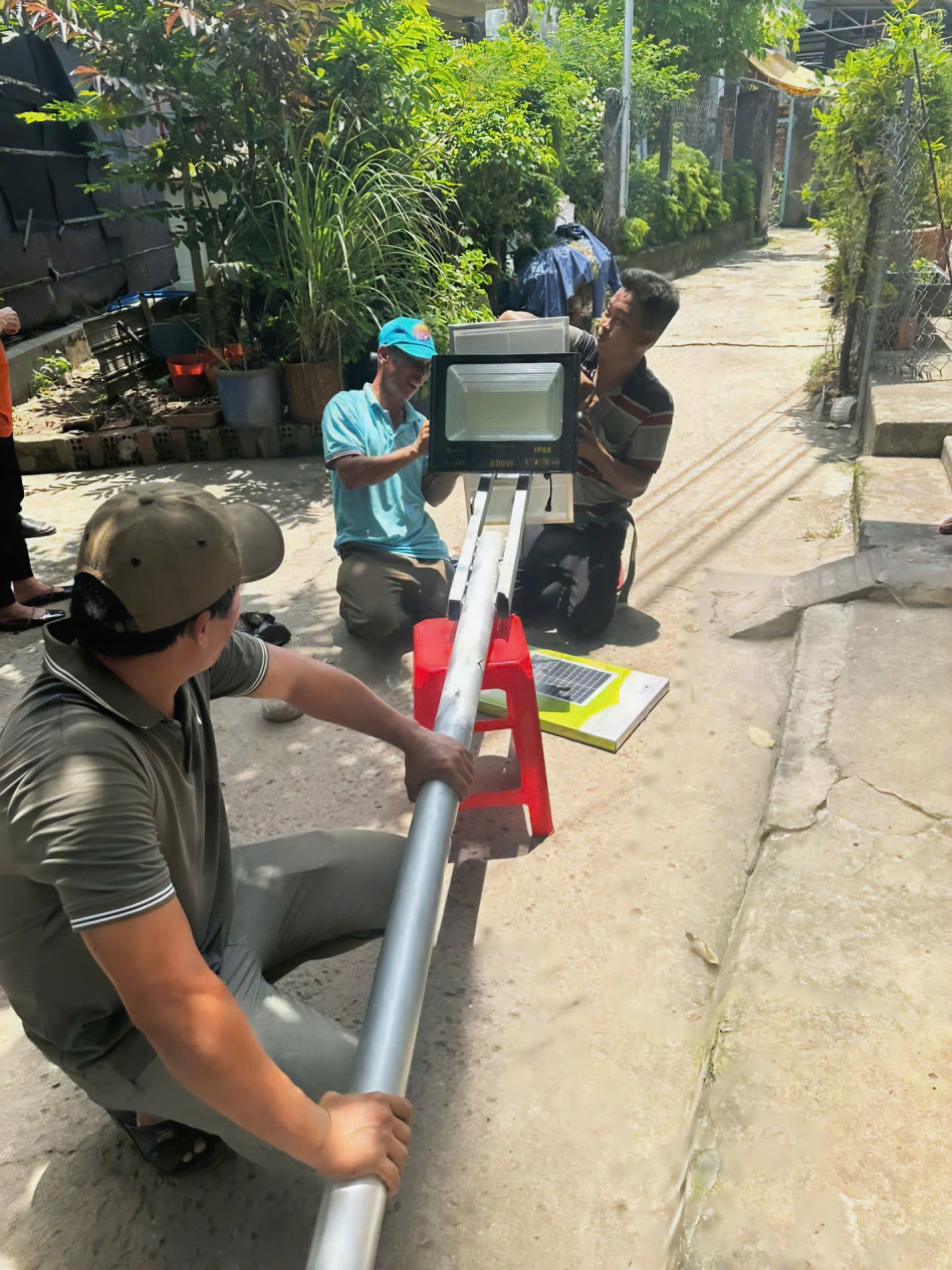 Công trình lắp đặt đèn chiếu sáng dân sinh có chiều dài hơn 200m với tổng chi phí là 27 triệu đồng do khu phố vận động mạnh thường quân thực hiện gồm lắp đặt 13 bóng đèn năng lượng mặt trời công xuất 600W và trụ sắt cố định được thực hiện từ ngày 08/8/2025, hoàn thành ngày 11/8/2025.