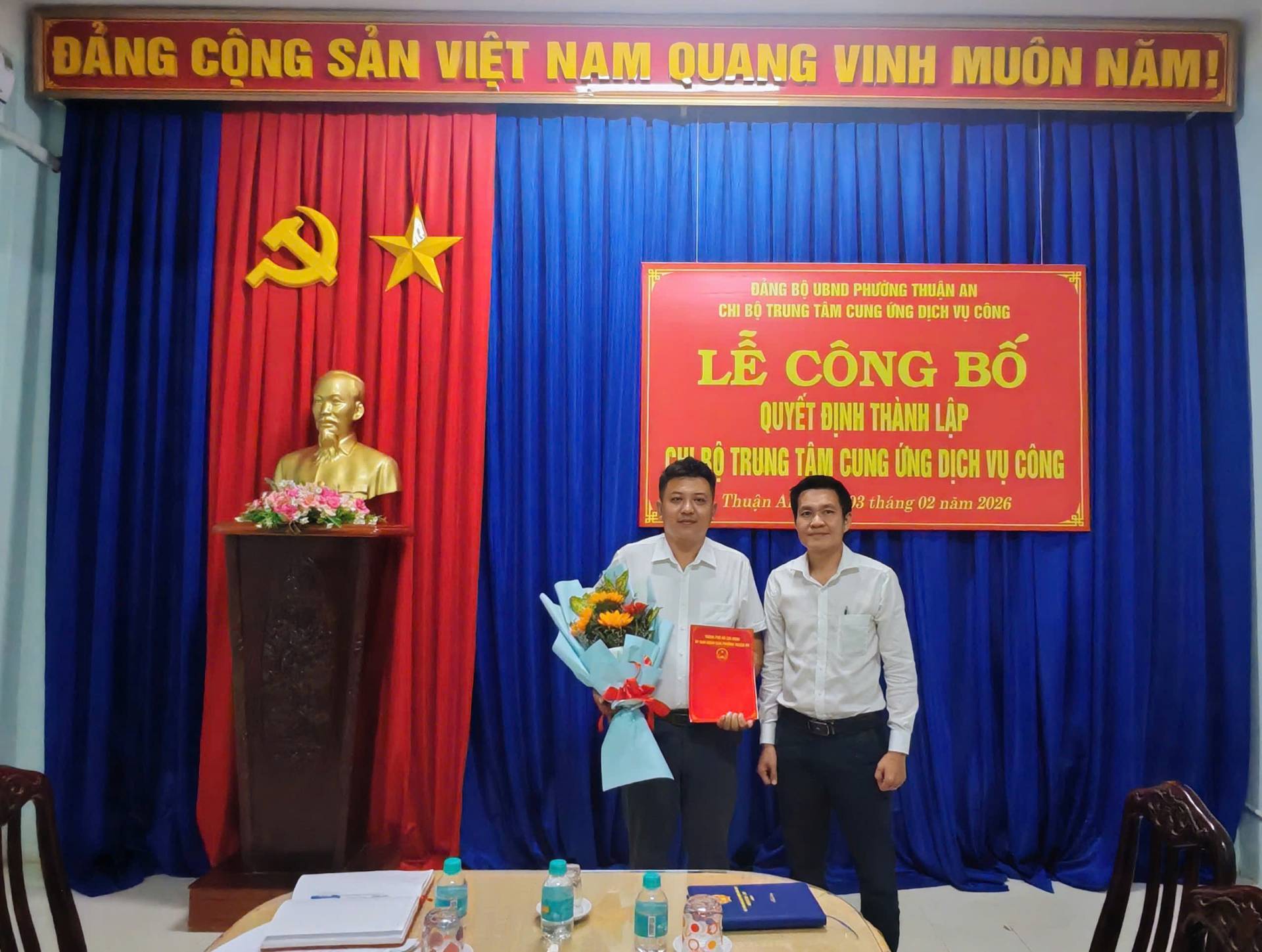 Ngày 03/02/2026, Đảng bộ UBND phường Thuận An đã long trọng tổ chức lễ công bố Quyết định thành lập Chi bộ Trung tâm Cung ứng dịch vụ công.