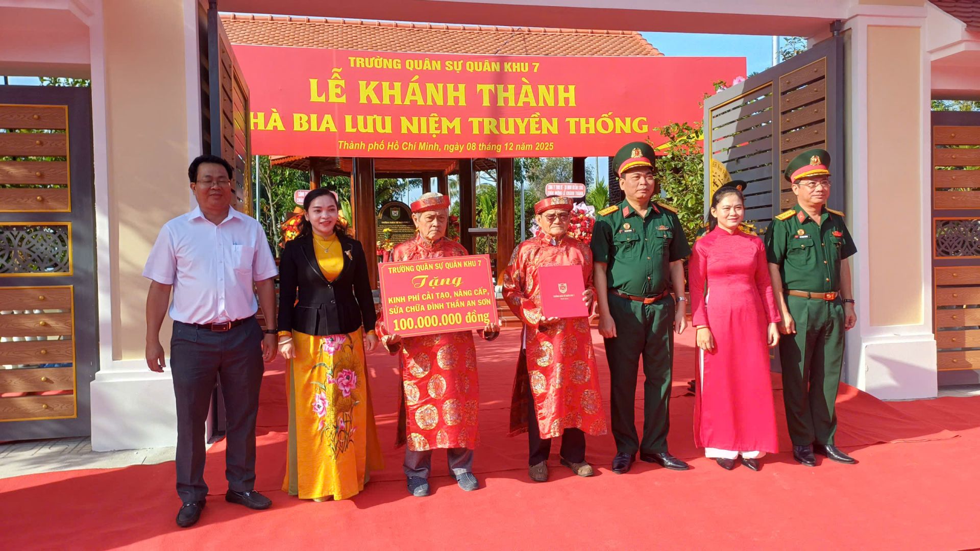 Sáng ngày 08/12/2025 Phường Thuận An phối hợp với Trường Quân sự Quân khu 7 tổ chức Lễ khánh thành Nhà bia lưu niệm truyền thống tại Di tích lịch sử Đình thần An Sơn – phường Thuận An.