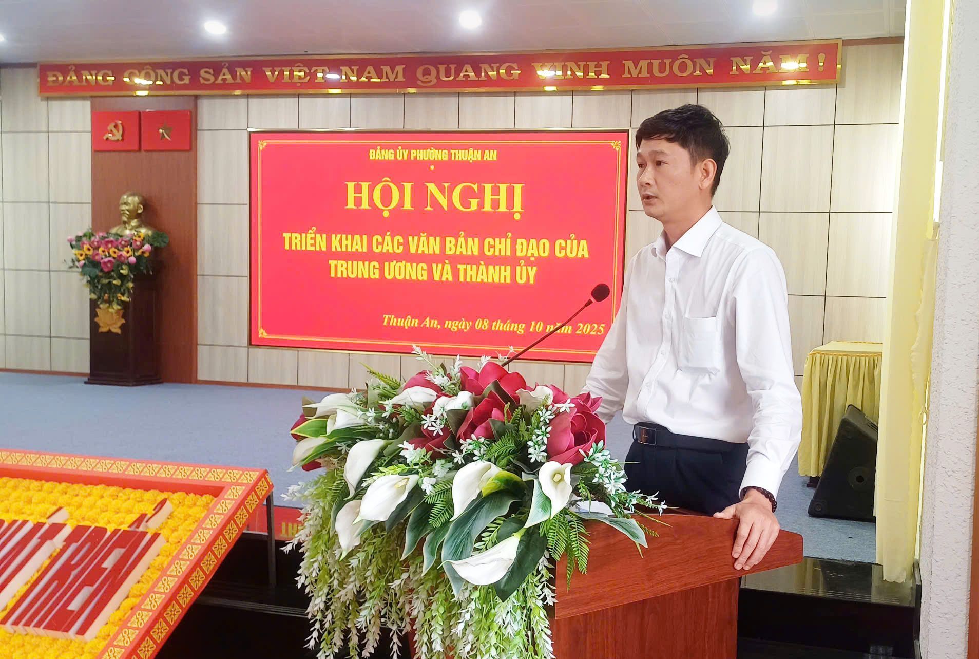 Chiều ngày 08/10, Đảng ủy phường Thuận An tổ chức Hội nghị chuyên đề “Nâng cao chất lượng công tác phát triển đảng viên” trên địa bàn phường và triển khai các văn bản chỉ đạo của Trung ương và Thành ủy.