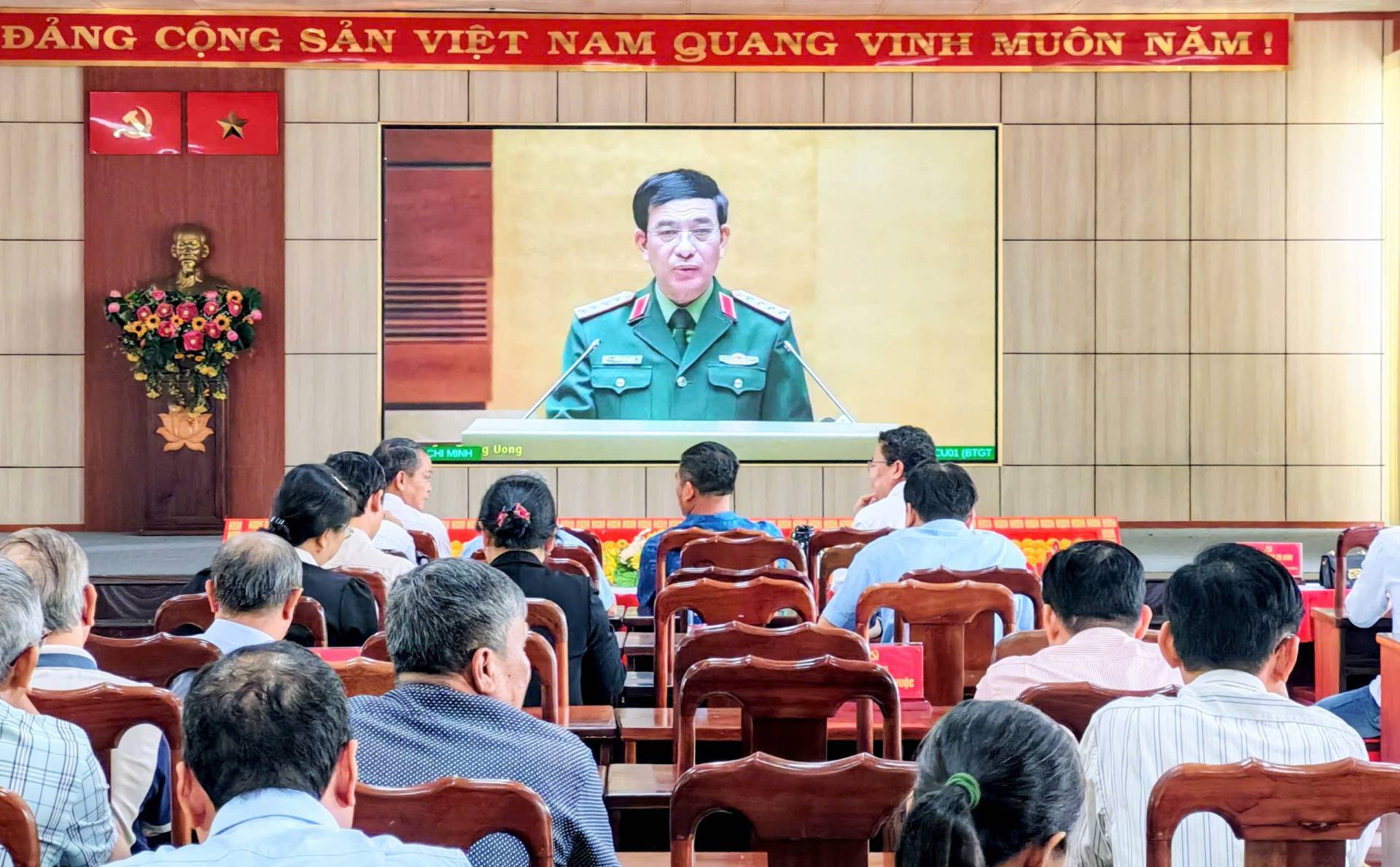Trong ảnh: Đồng chí Phan Văn Giang, Ủy viên Bộ Chính trị, Bộ trưởng Bộ Quốc phòng truyền đạt Chuyên đề 6: "Tư duy, nhận thức mới về quốc phòng, bảo vệ Tổ quốc của Đại hội XIV" tại hội nghị.
