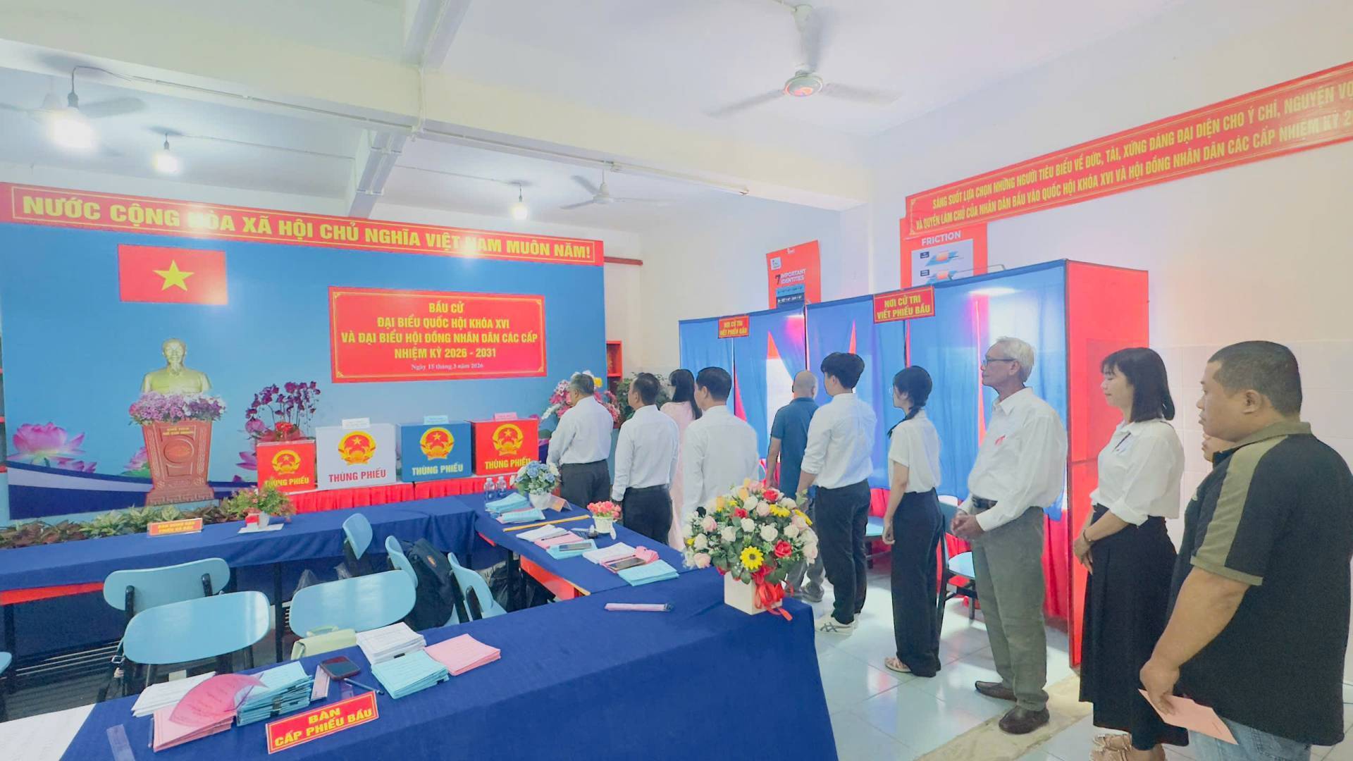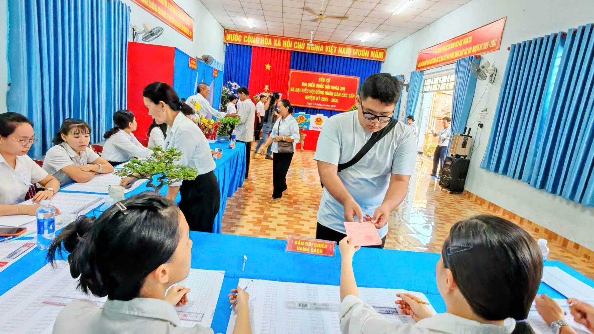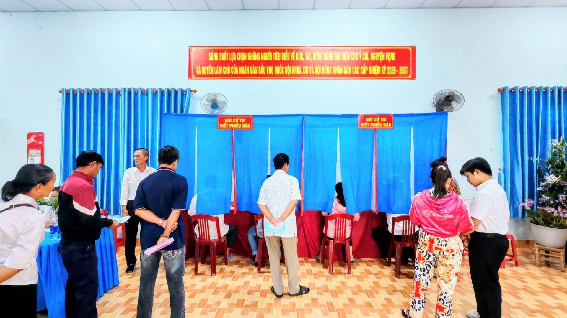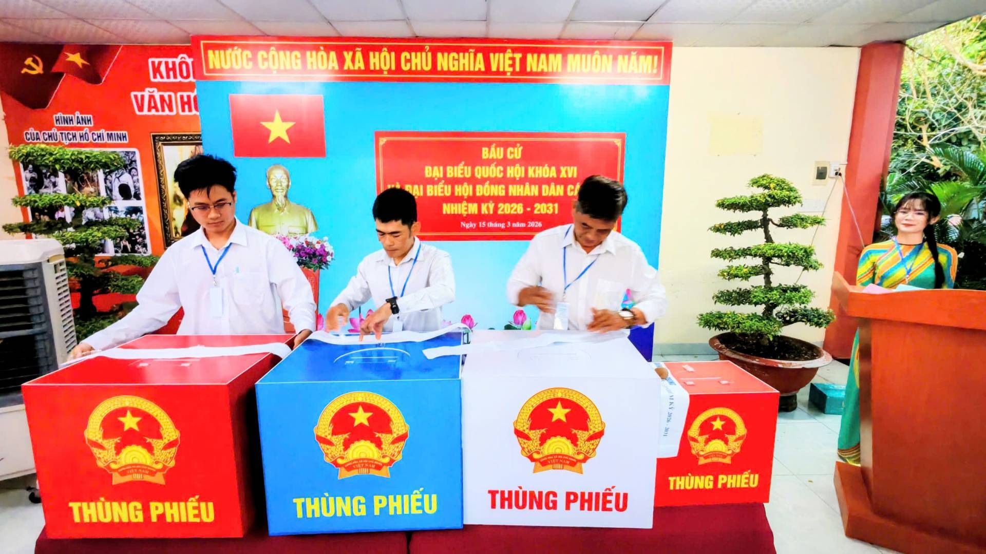 Hoạt động bỏ phiếu bắt đầu từ 7h sáng và kết thúc lúc 19h ngày 15/03/2026. Mỗi cử tri có quyền bỏ 1 phiếu bầu cử đại Quốc hội và bỏ 1 phiếu bầu đại biểu HĐND tương ứng với mỗi cấp HĐND và mình được tham gia bầu cử.