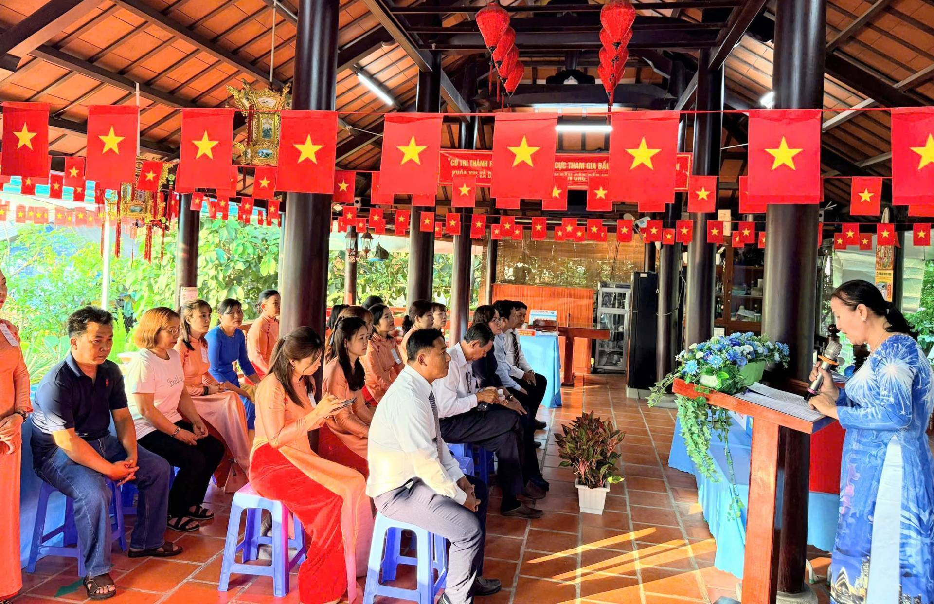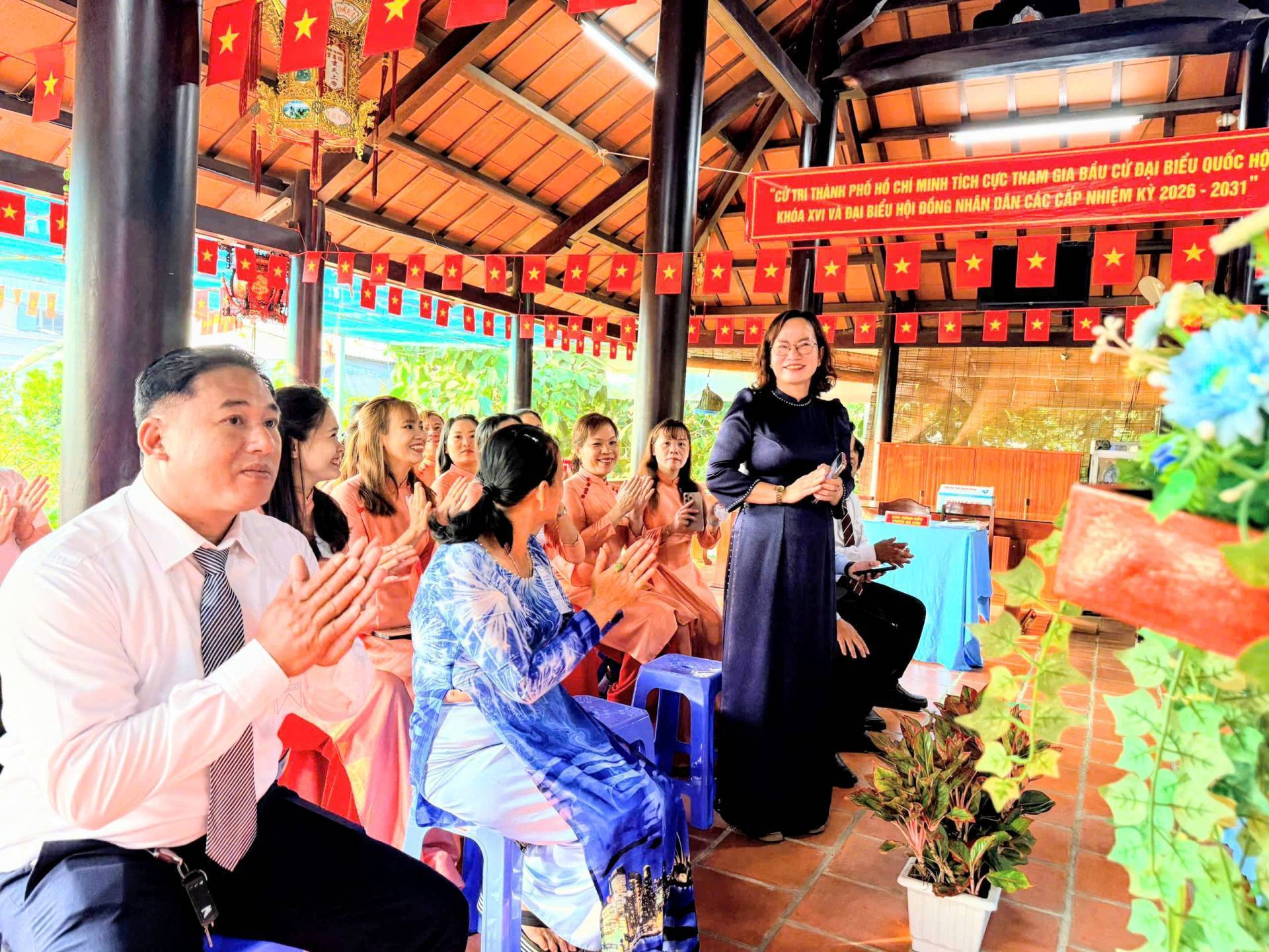 Tại khu vực bỏ phiếu số 22, điểm bầu cử nhà ông Huỳnh Văn Tánh, đồng chí Nguyễn Ngọc Nhung- UVTV, Phó Chủ tịch HĐND phường dự lễ khai mạc ngày bầu cử đại biểu Quốc hội khóa XVI và đại biểu HĐND các cấp nhiệm kỳ 2026-2031