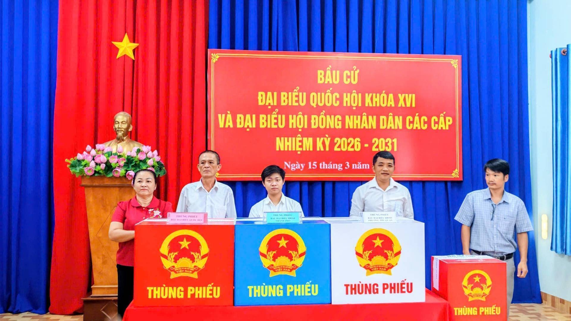 Sáng nay 15/03/2026, hòa trong không khí tưng bừng, phấn khởi của cử tri cả nước nói chung và nhân dân phường Thuận An nói chung, tại 26 khu vực bỏ phiếu bầu cử trên địa bàn phường đã long trọng tổ chức lễ khai mạc ngày bầu cử đại biểu Quốc hội khóa XVI và đại biểu HĐND các cấp nhiệm kỳ 2026-2031.