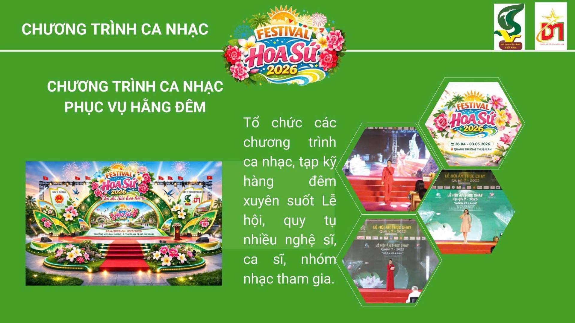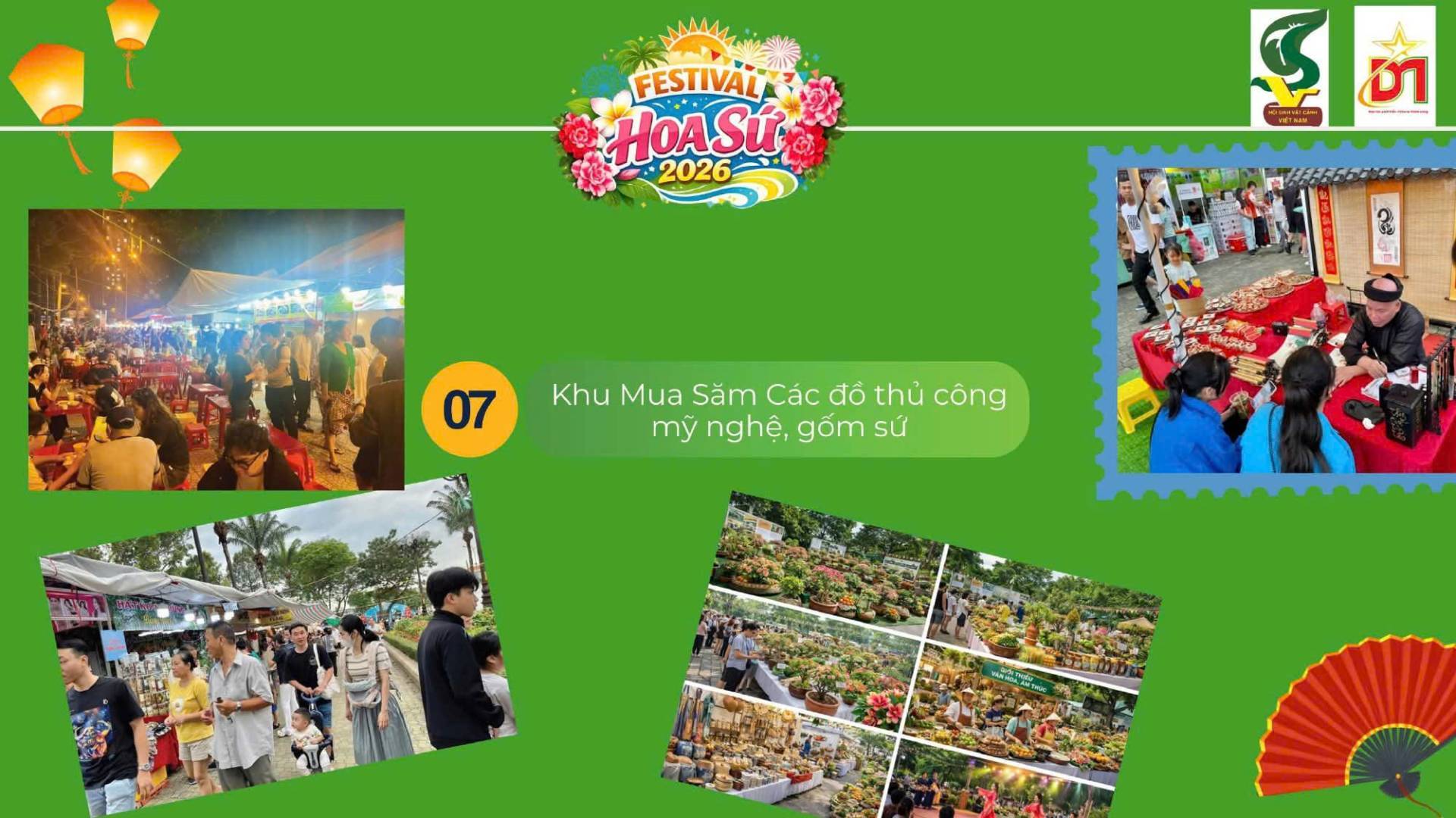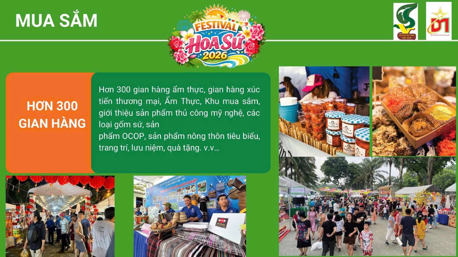 Bên cạnh các khu trưng bày hoa sứ và cây cảnh nghệ thuật, F estival còn có nhiều hoạt động phong phú như triển lãm bonsai, khu trải nghiệm văn hóa - du lịch, giới thiệu sản phẩm nông nghiệp, ẩm thực đặc trưng và các chương trình giao lưu nghệ thuật. Tất cả cùng hòa quyện tạo nên một lễ hội rực rỡ sắc hoa, góp phần quảng bá hình ảnh địa phương, thúc đẩy du lịch và phát triển kinh tế - văn hóa bền vững. Festival Hoa Sứ năm 2026 vào cổng miễn phí.