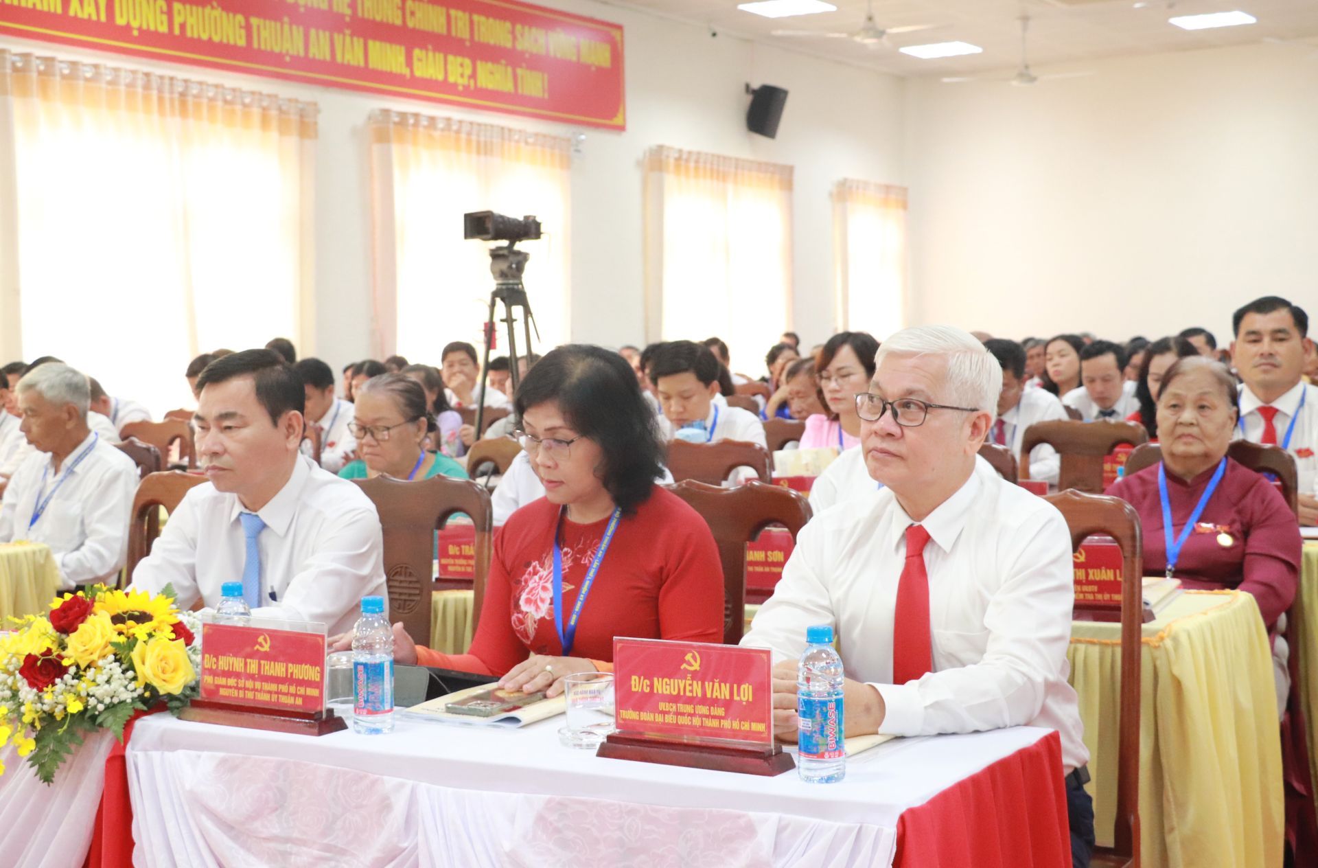 Tham dự có đồng chí Nguyễn Văn Lợi - Ủy viên Trung ương Đảng, Trưởng Đoàn Đại biểu Quốc hội TP.Hồ Chí Minh; đồng chí Nguyễn Văn Minh - Ủy viên Ban Thường vụ Thành ủy, Phó ban Tổ chức Thành ủy TP. Hồ Chí Minh, Tổ trưởng Tổ công tác số 19 Ban Chỉ đạo Đại hội; lãnh đạo các sở, ngành Thành phố; đồng chí Trần Thị Diễm Trinh - Thành ủy viên, Bí thư Đảng ủy, Chủ tịch HĐND phường; đồng chí Phan Thái Sơn - Phó Bí thư Thường trực Đảng ủy; đồng chí Nguyễn Thanh Sơn - Phó Bí thư Đảng ủy, Chủ tịch UBND phường; các đồng chí lãnh đạo, nguyên lãnh đạo phường qua các thời kỳ; các đồng chí trong Ban Thường vụ, Ban Chấp hành Đảng bộ phường Thuận An khoá I, nhiệm kỳ 2025 - 2030 cùng 170 đại biểu chính thức đại diện cho hơn 1.044 đảng viên tại 36 chi, đảng bộ trực thuộc.