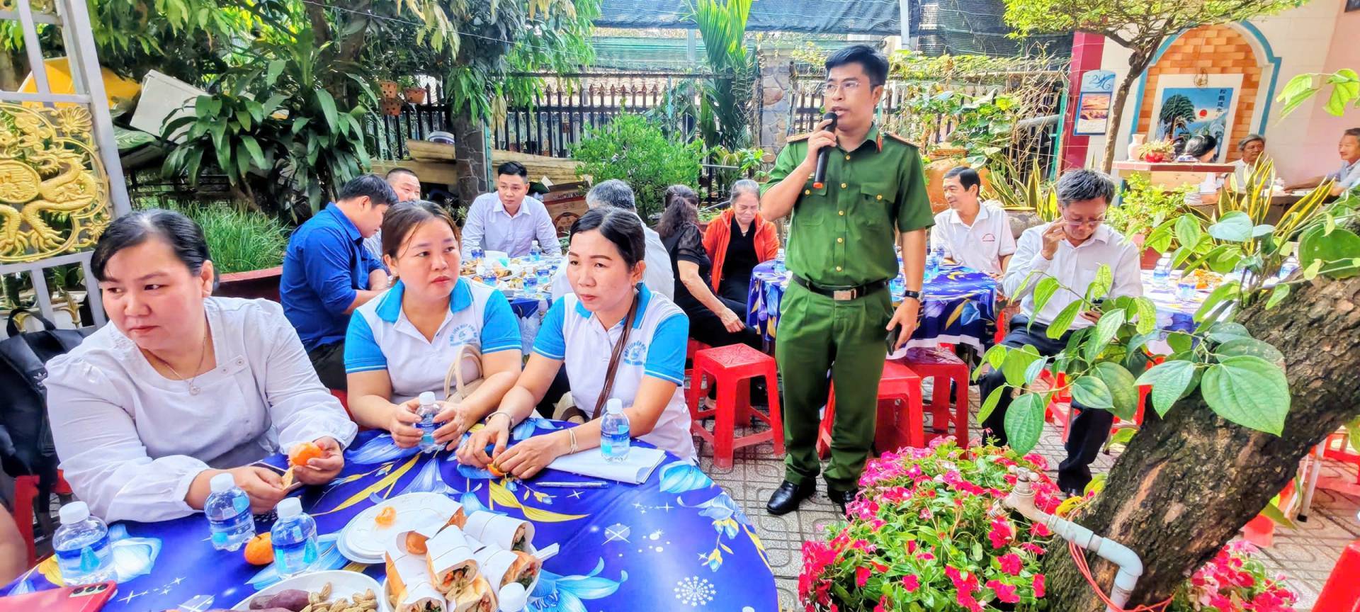 Thượng úy Lâm Thanh Vang, phụ trách địa bàn khu phố Thạnh Bình đã tuyên truyền về nội dung “khu phố không ma tuý”