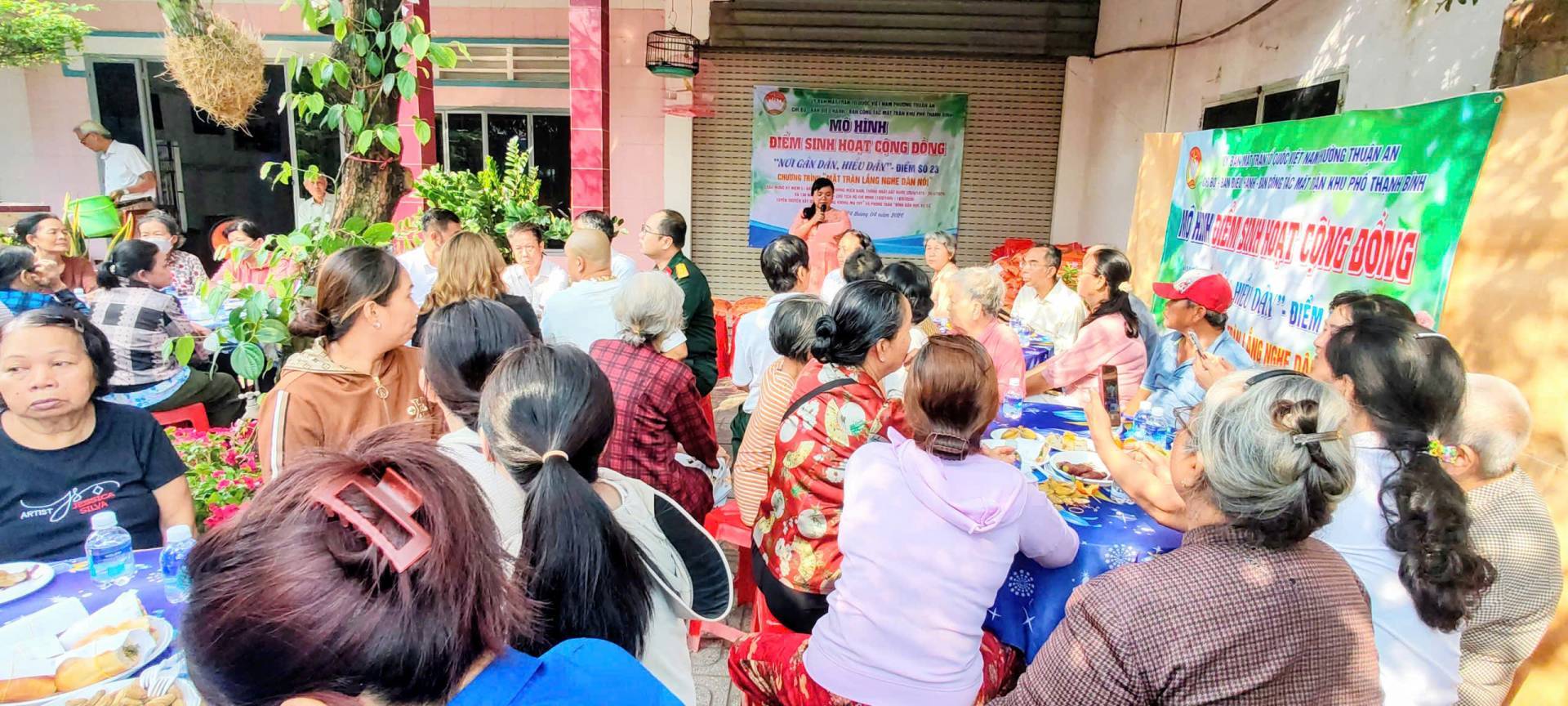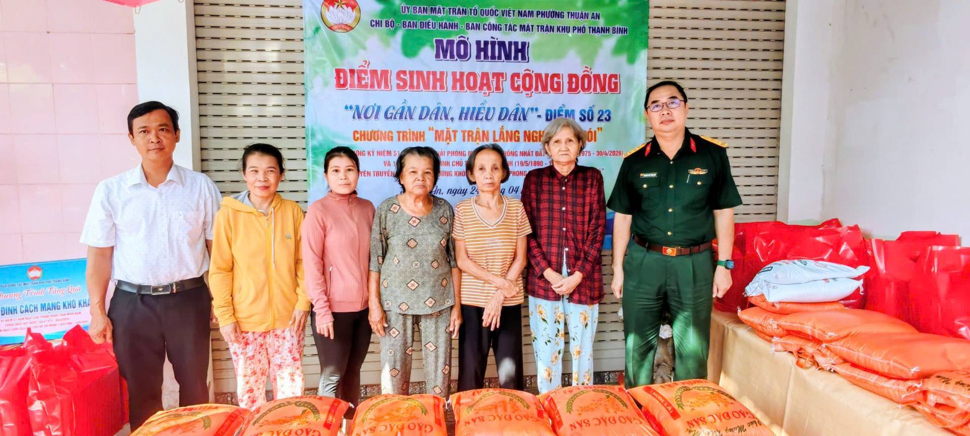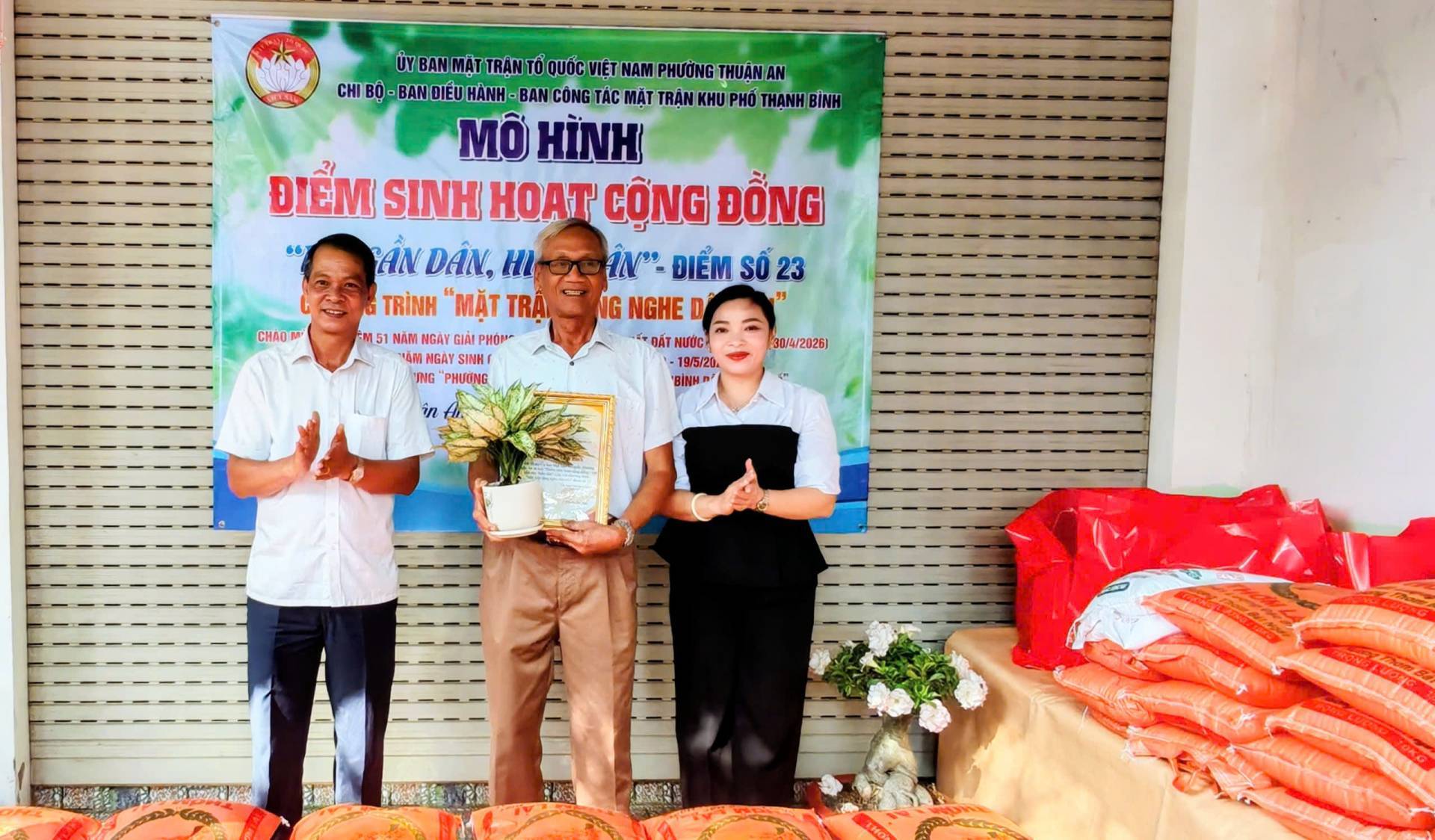Sáng ngày 24/4/2026, Ủy ban MTTQ Việt Nam phường Thuận An phối hợp cùng Chi bộ – Ban Điều hành – Ban Công tác Mặt trật khu phố Thạnh Bình tổ chức ra mắt “Điểm sinh hoạt cộng đồng nơi gần dân, hiểu dân”- điểm số 23, tại gia đình ông Lê Văn Lễ, địa chỉ số 302/3.