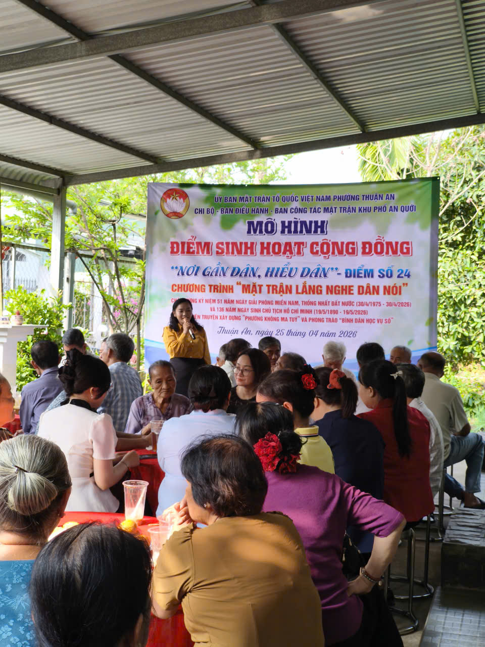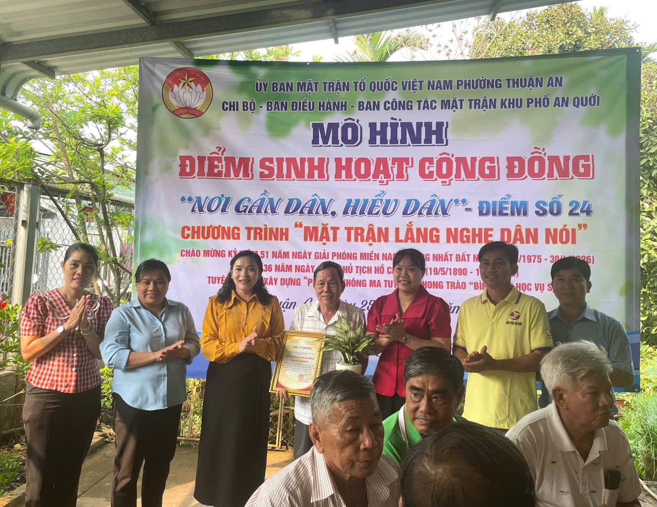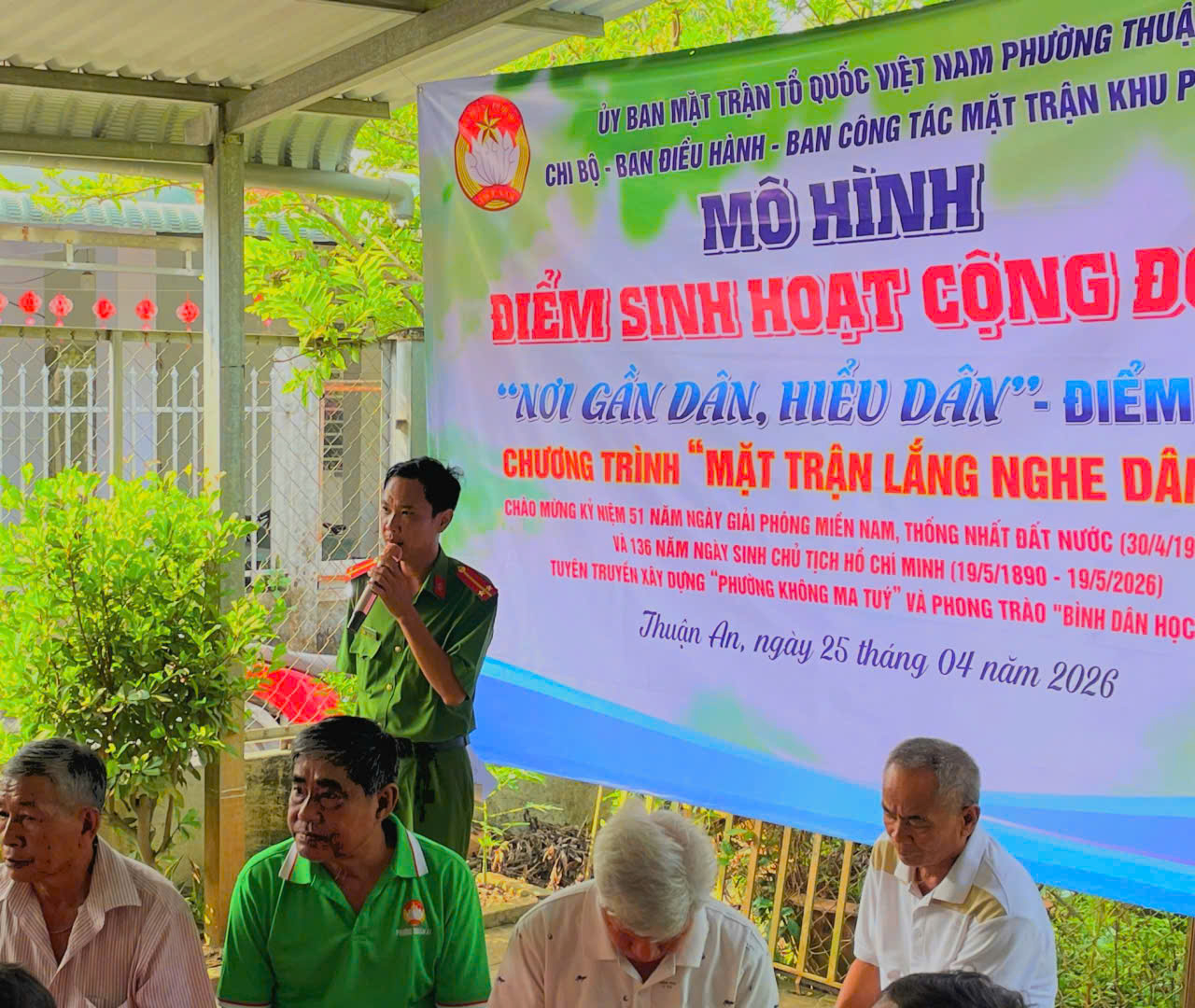 Sáng ngày 25/4/2026, Ủy ban MTTQ Việt Nam phường Thuận An phối hợp cùng Chi bộ – BĐH – Ban CTMT khu phố An Quới tổ chức ra mắt “Điểm sinh hoạt cộng đồng - Nơi gần dân, hiểu dân” điểm số 24, tại nhà đồng chí Nguyễn Thanh Hùng, khu phố An Quới, phường Thuận An, thành phố Hồ Chí Minh.