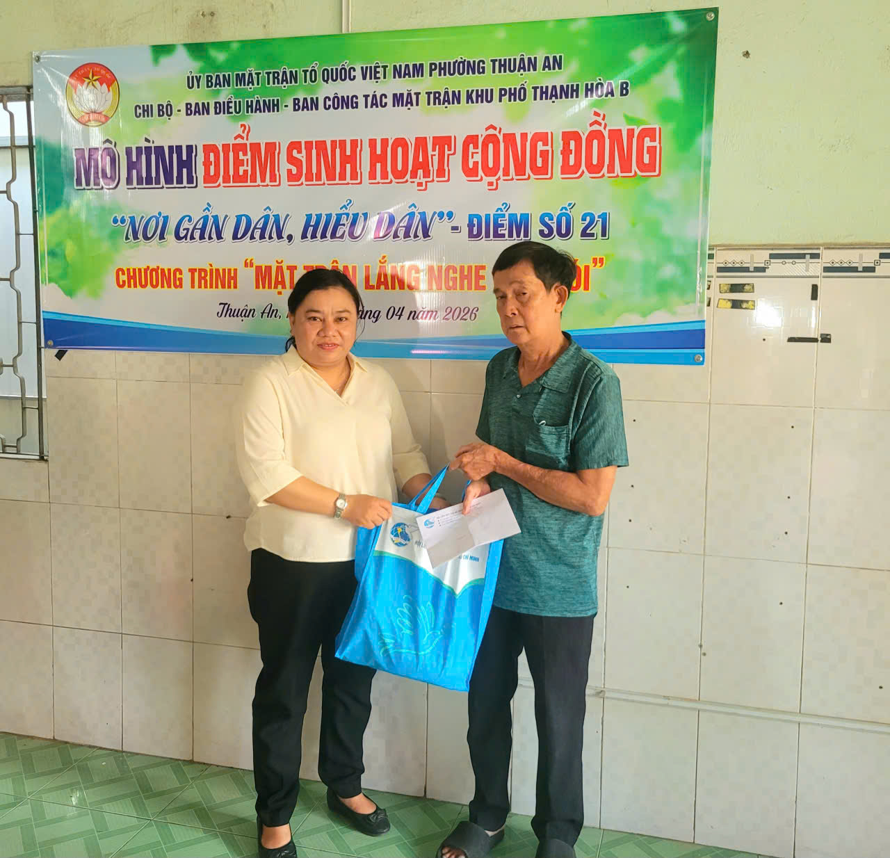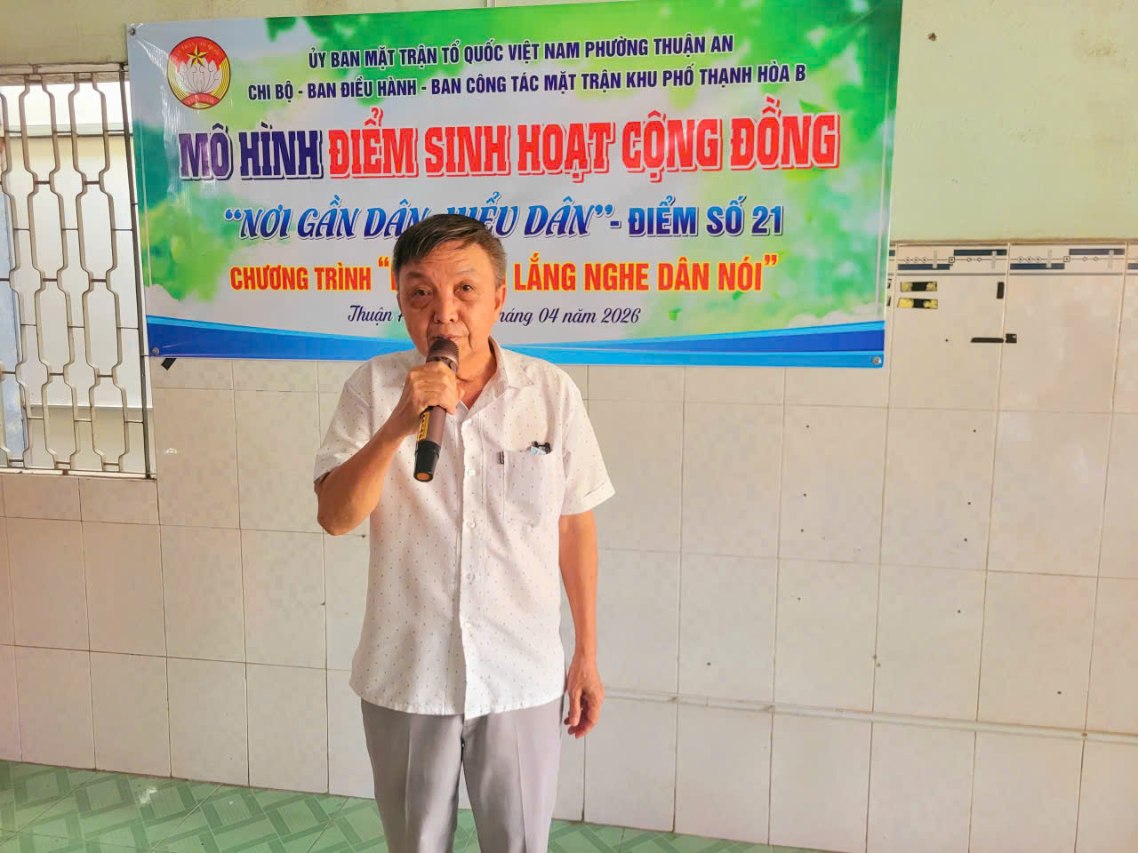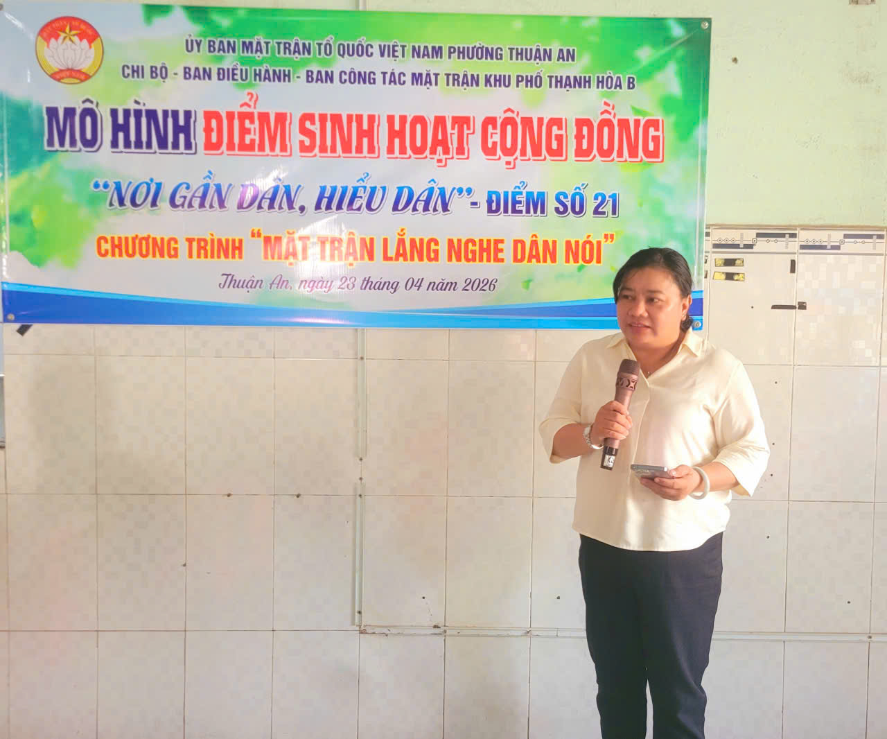 Nhằm tiếp tục đổi mới nội dung, phương thức hoạt động, nâng cao hiệu quả công tác tập hợp, phát huy sức mạnh khối đại đoàn kết toàn dân tộc, sáng ngày 23/4/2026 Ủy ban Mặt trận Tổ quốc Việt Nam phường Thuận An đã tổ chức Lễ ra mắt mô hình “Điểm sinh hoạt cộng đồng – Nơi gần dân, hiểu dân” điểm số 21 trên địa bàn phường.