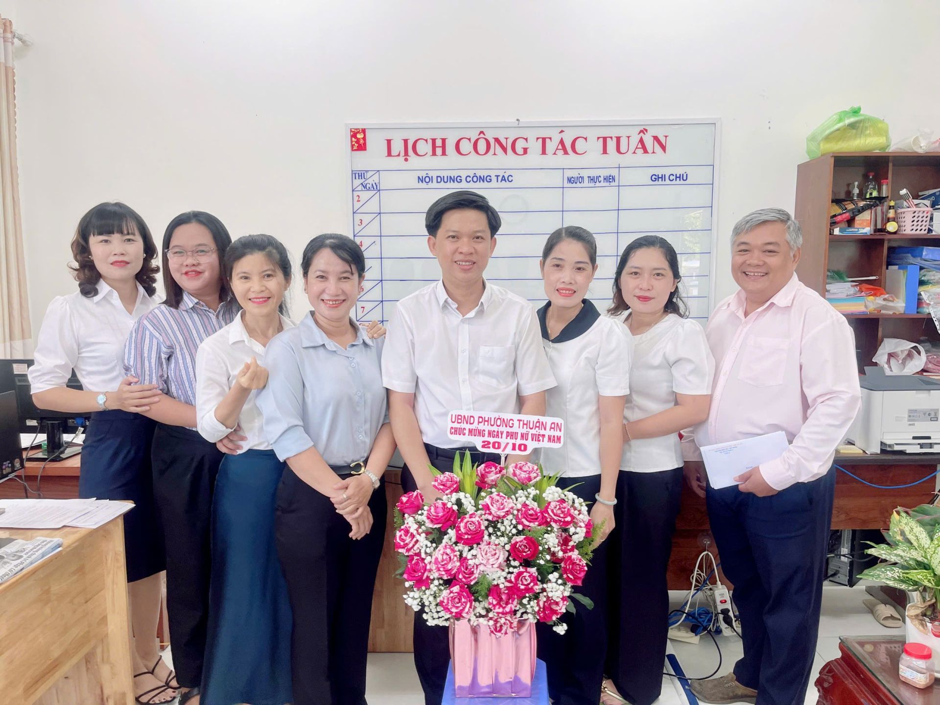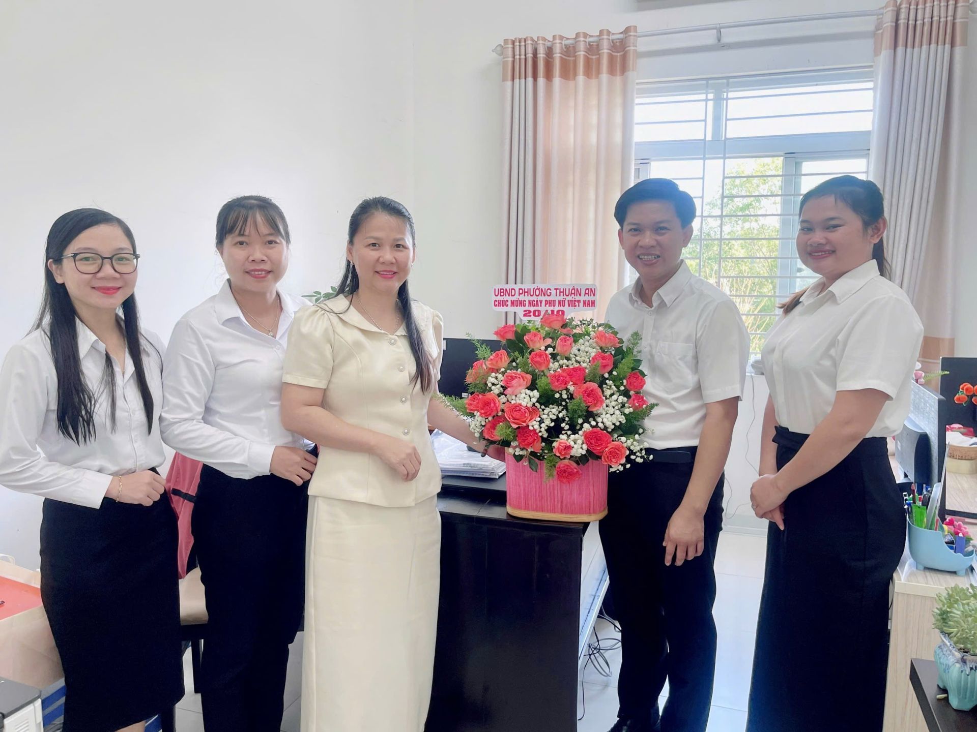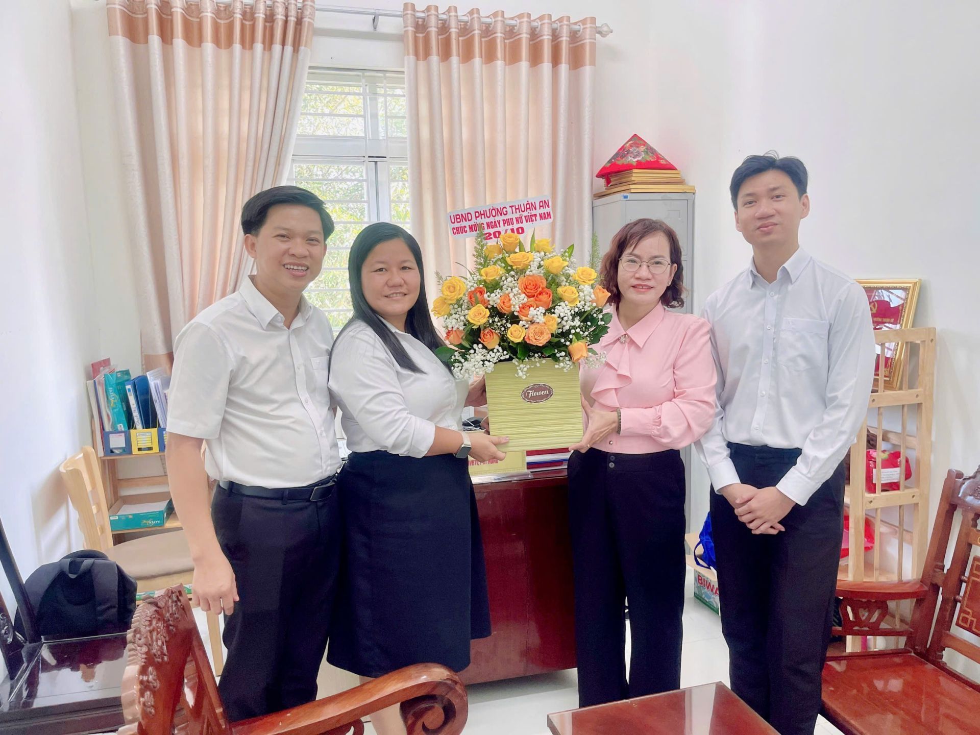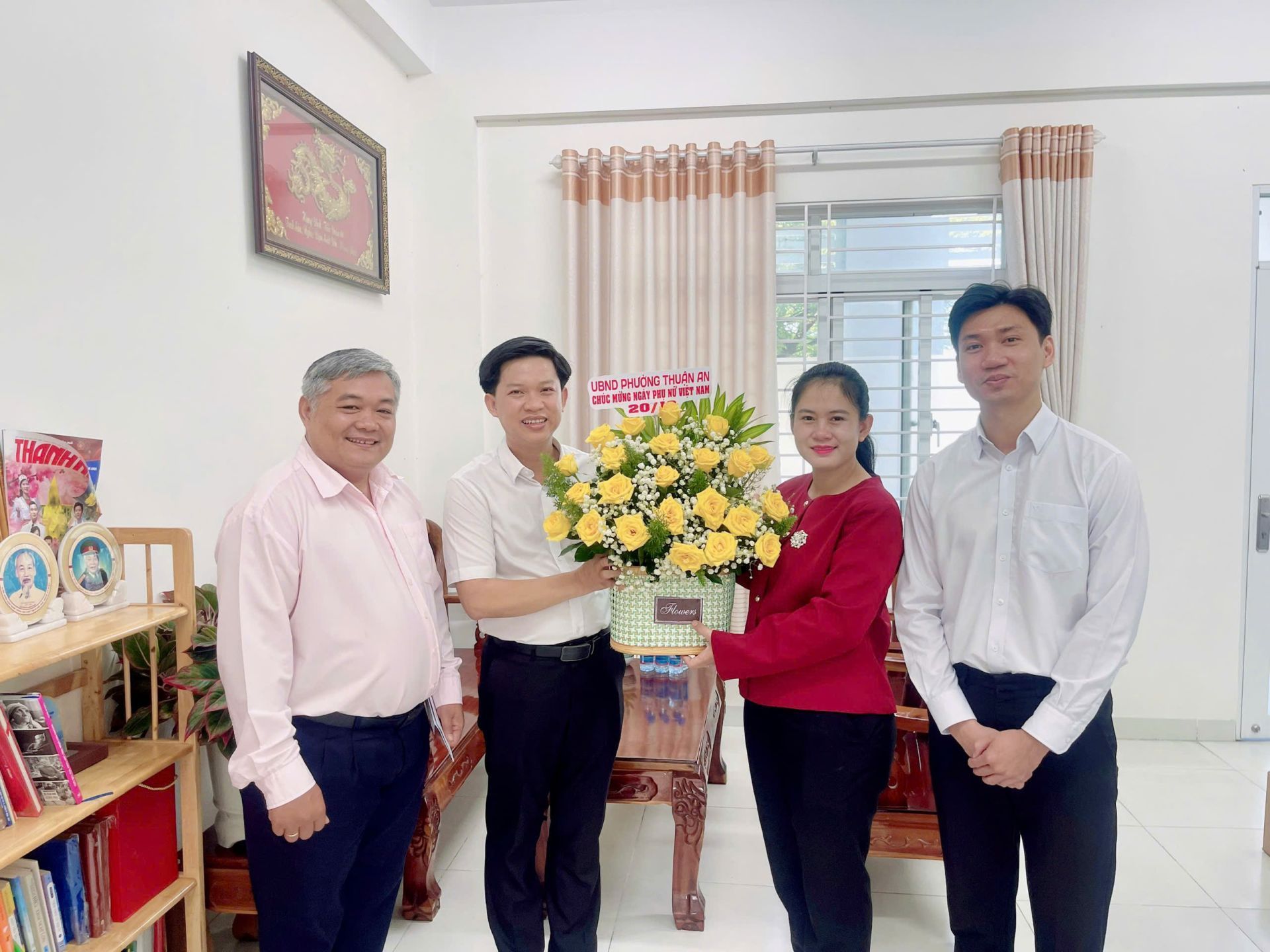 Tại mỗi nơi đến, lãnh đạo phường Thuận An đã tặng những lẵng hoa tươi thắm nhằm trân trọng ghi nhận và biểu dương những đóng góp thiết thực của các mẹ, những phụ nữ cao tuổi, của đội ngũ cán bộ, chuyên viên, nhân viên là phụ nữ trong công tác xây dựng Đảng, chính quyền và phát triển phong trào thi đua yêu nước tại địa phương. Các vị lãnh đạo đã gửi lời chúc mừng tốt đẹp đến Mẹ Việt Nam Anh Hùng - Trần Thị Tư, bà Phạm Thị Sửu 107 tuổi (Phụ nữ cao tuổi nhất của phường), toàn thể cán bộ, công chức, người lao động nữ nhân ngày Phụ nữ Việt Nam – chúc mẹ, các chị em luôn tươi vui, mạnh khỏe, hạnh phúc, thành đạt, tiếp tục phát huy tinh thần đoàn kết, năng động, sáng tạo, hoàn thành tốt nhiệm vụ, đóng góp tích cực cho sự phát triển của phường Thuận An ngày càng phát triển, văn minh, hiện đại.