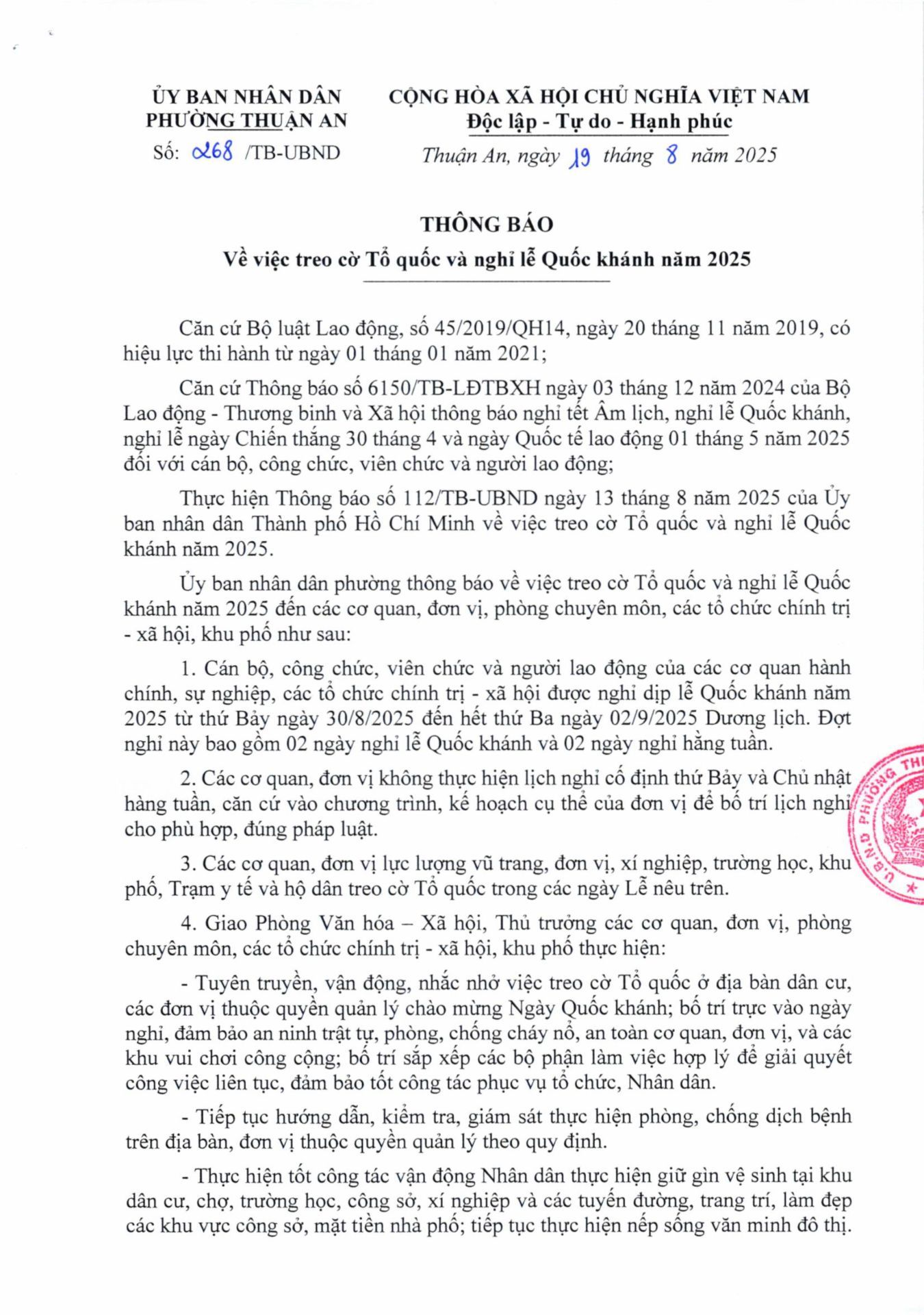 THÔNG BÁO TREO CỜ TỔ QUỐC VÀ NGHĨ LỄ QUỐC KHÁNH 2/9