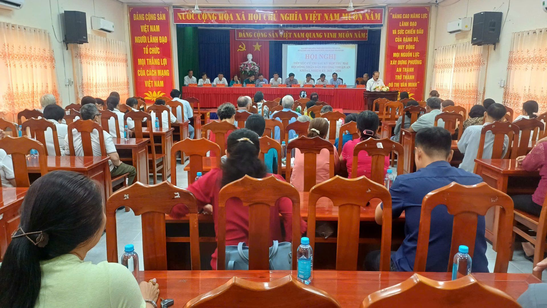 Sáng ngày 13/8/2025, tại Hội trường Ban chỉ huy Quân sự phường Thuận An, thành phố Hồ Chí Minh đại biểu Hội đồng nhân dân phường Thuận An, thành phố Hồ Chí Minh tiếp xúc cử tri 03 khu phố Thạnh Bình, Thạnh Lợi và khu phố Thạnh Lộc sau kỳ họp lần thứ hai Khóa I, nhiệm kỳ 2021 – 2026.