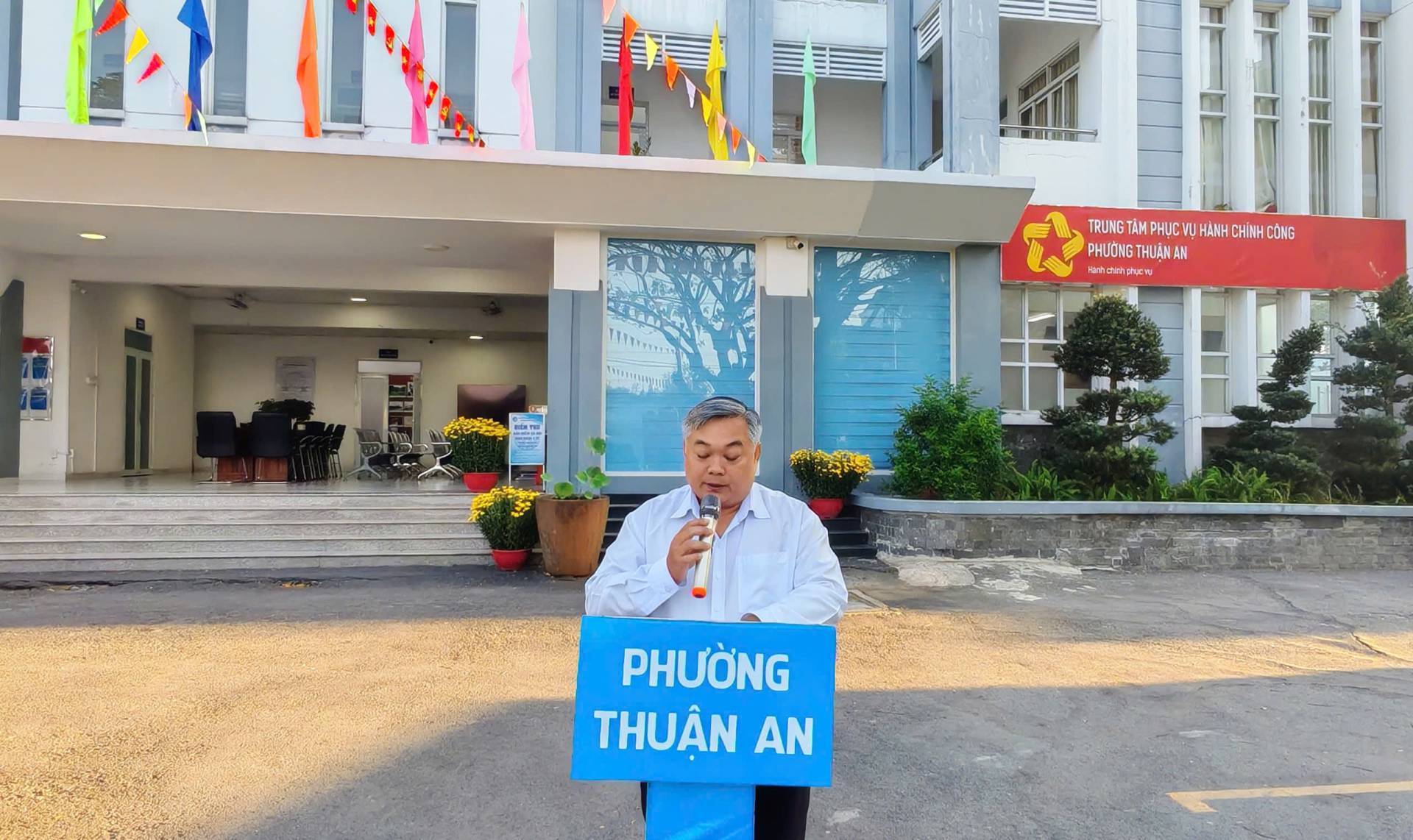 Tham dự có đồng chí Huỳnh Văn Sơn-Bí thư Đảng ủy, Chủ tịch HĐND phường; đồng chí Nguyễn Thanh Sơn – Phó Bí thư Đảng ủy, Chủ tịch UBND phường; đồng chí Nguyễn Ngọc Nhung, UVTV, Phó Chủ tịch HĐND phường; đồng chí Đỗ Huỳnh Tú Anh, UVTV, Trưởng Ban Xây dựng Đảng, Trưởng ban kinh tế - ngân sách; đồng chí Ngô Tiến Đạt, Phó Chủ tịch UBND phường; Đồng chí Nguyễn Thanh Quan, Phó Chủ tịch UBND phường; đồng chí Nguyễn Thị Thanh Xuân, Phó Chủ tịch MTTQ, Chủ tịch Hội Liên hiệp Phụ nữ phường; đồng chí Đỗ Ngọc Ẩn, UVTV, Trưởng Công An phường; đồng chí Nguyễn Viết Minh Đức, Chỉ huy Trưởng Ban Chỉ huy Quân sự phường Thuận An cùng toàn thể cán bộ, công chức, viên chức, người lao động và lực lượng vũ trang của phường.
