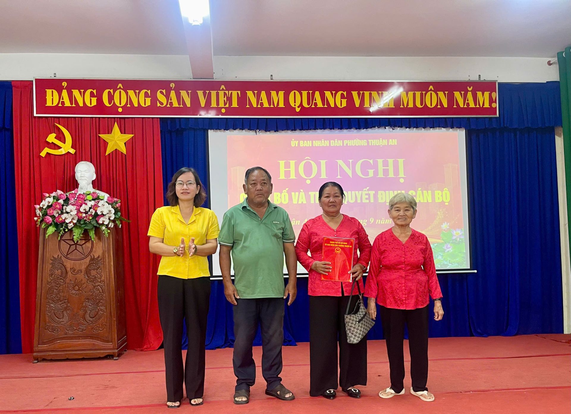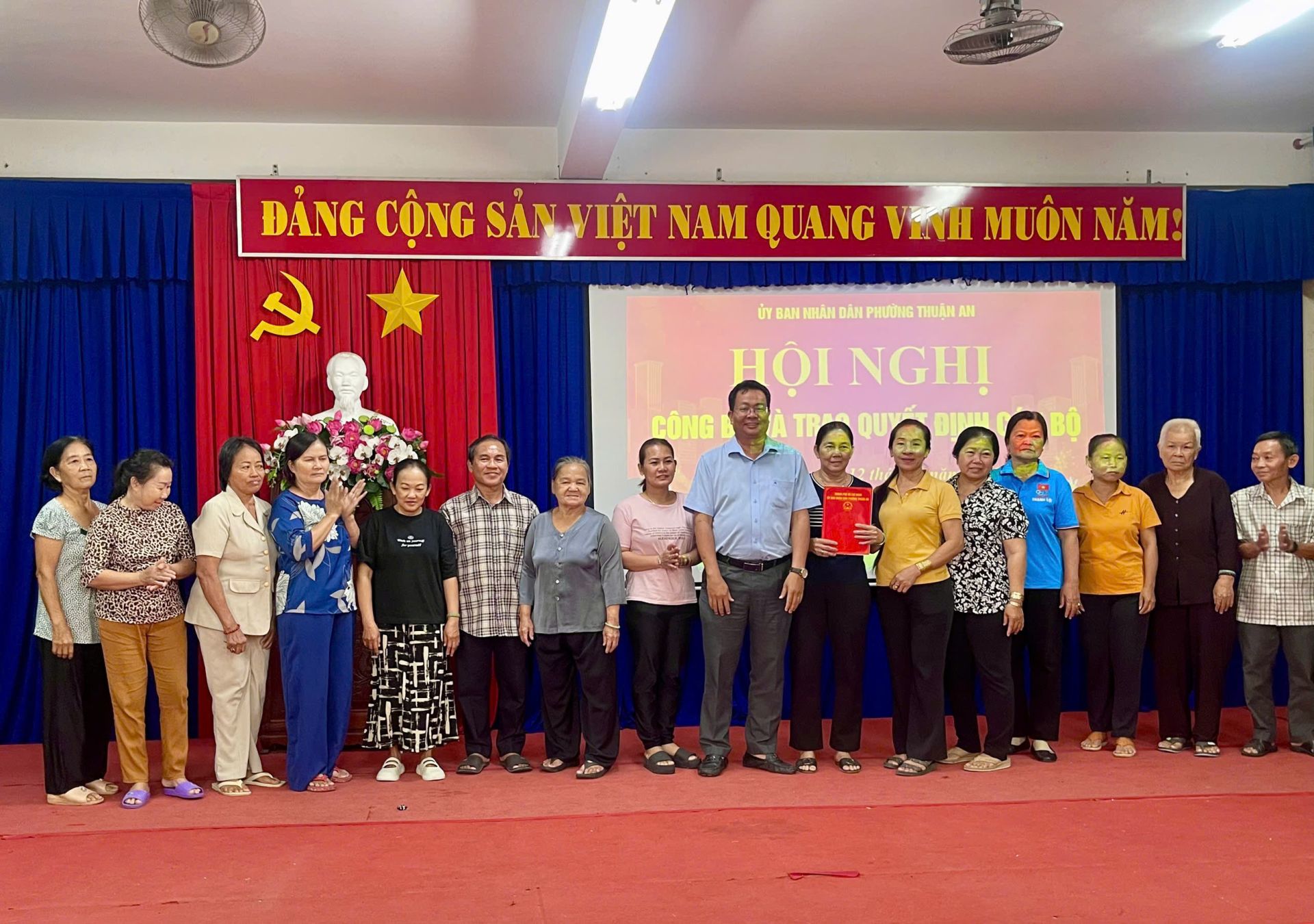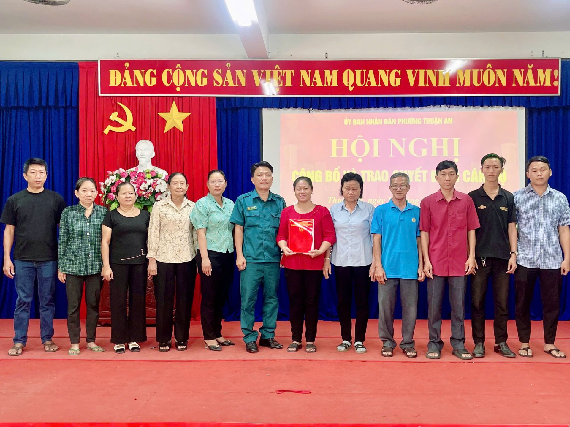 Tại Hội nghị thay mặt phường Thuận An, Ông Lê Minh Đức - Đảng ủy viên, Trưởng phòng VHXH phường đã công bố 15 Quyết định công nhận đối với Trưởng khu phố, 11 Quyết định Phó khu phố, 15 Quyết định công nhận Tổ trưởng, tổ phó các tổ nhân dân tự quản trên địa bàn phường.