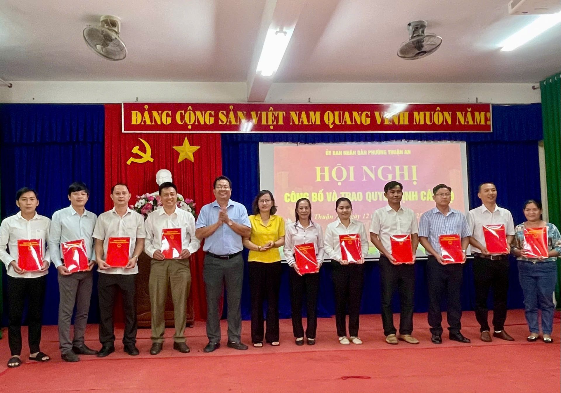 Cũng tại Hội nghị phường Thuận An cũng đã công bố và trao 14 Quyết định nghỉ việc đối với cán bộ, công chức, cán bộ không chuyên trách và 04 quyết định nghỉ hưu đối với viên chức ngành giáo dục.